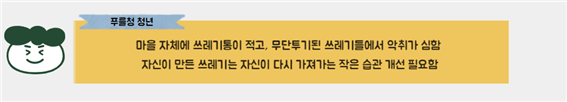 또한, 우리 마을의 쓰레기 현황을 보며 재활용 캠페인 판넬을 제작해 마을을 돌아다니며 주민들에게 알리는 활동을 하려고 했습니다.