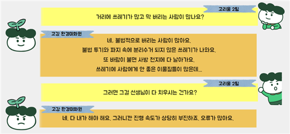 저희는 주민분과의 인터뷰를 통해 고강본동의 쓰레기 무단투기의 심각성에 대해 알게 되었고,
