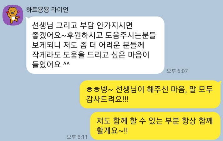 또 '마을에서 후원하고 도움을 주시는 분들을 보게 되니 작게라도 도움을 드리고 싶어요'라고 하며