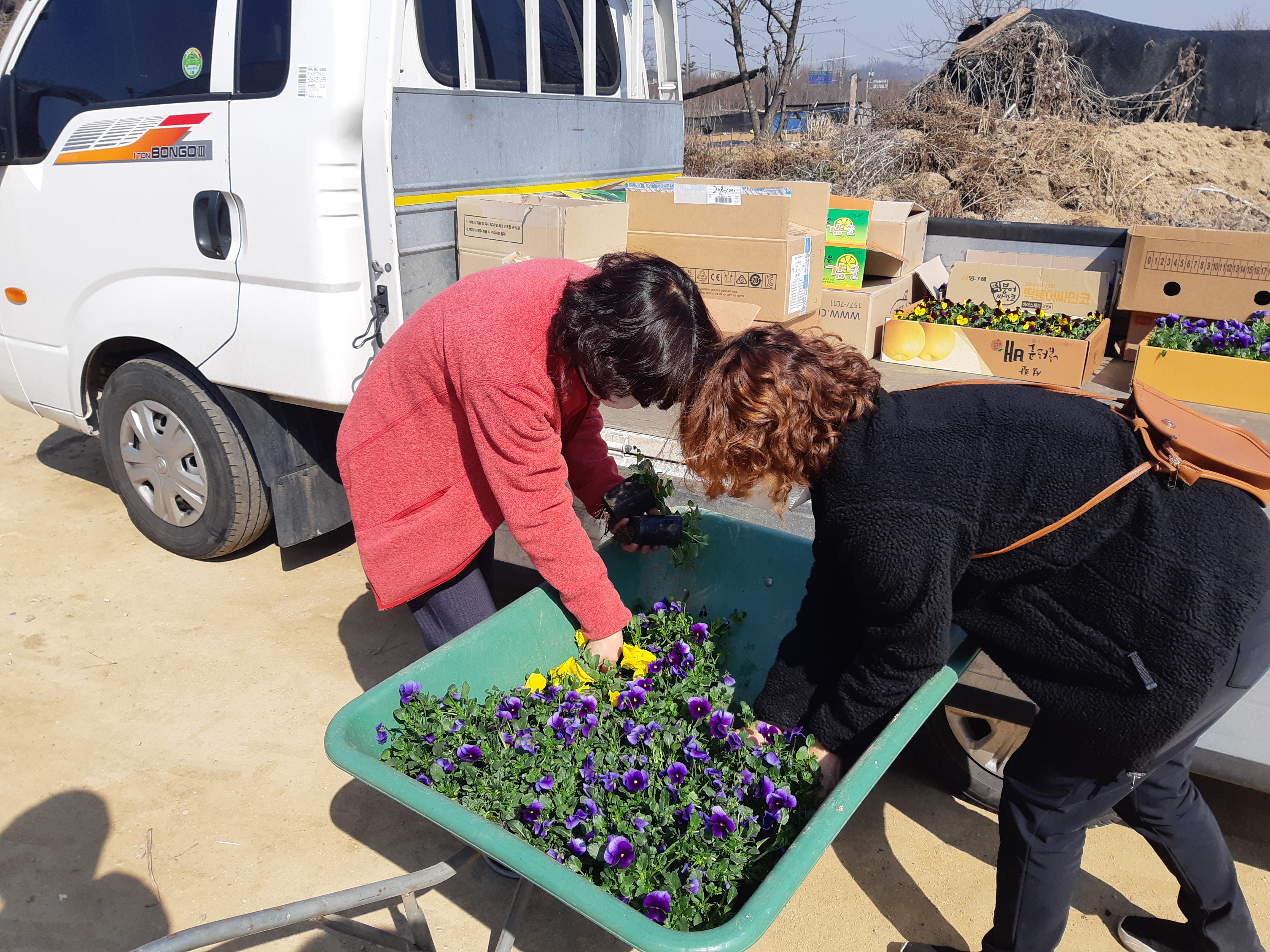 “복지관 앞에 꽃이 듬성듬성 심어져 있던데,, 거기에 심을 것도 필요해.”