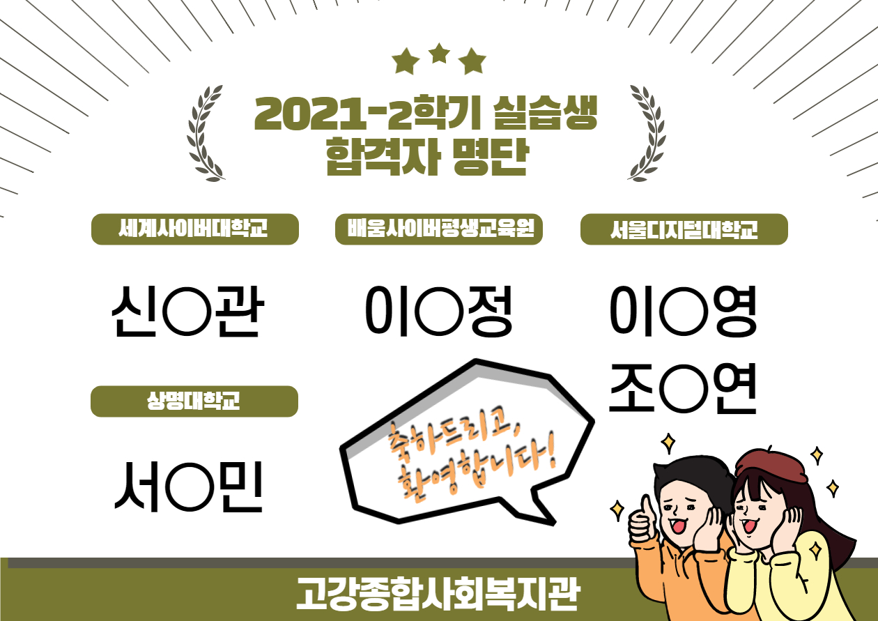 | 2021-2학기 사회복지현장실습생 모집 (1) | 2021.07.19 |