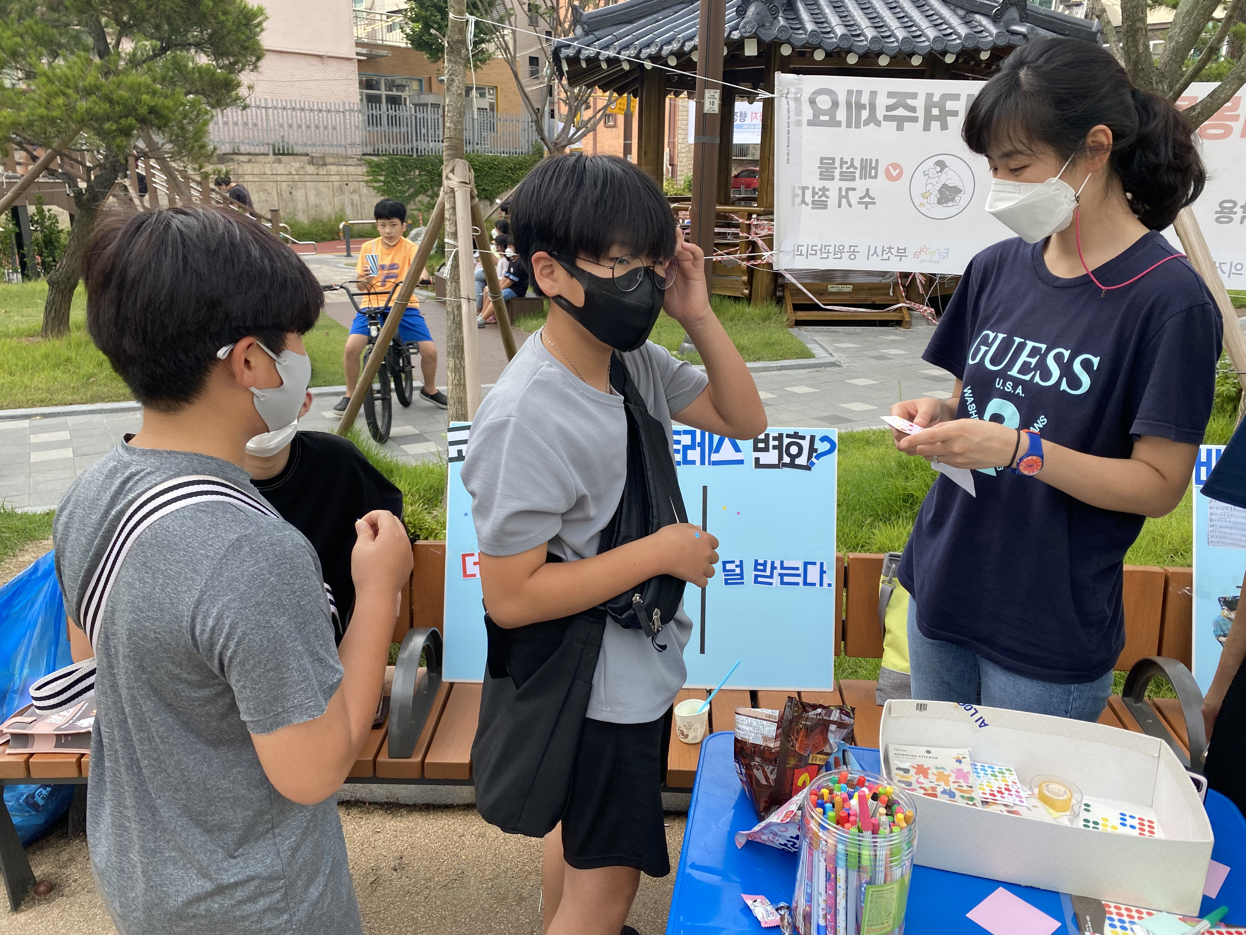 오늘은 방토피아에서 아동 스트레스를 주제로 한 캠페인을 고리울 공원으로 나왔습니다.