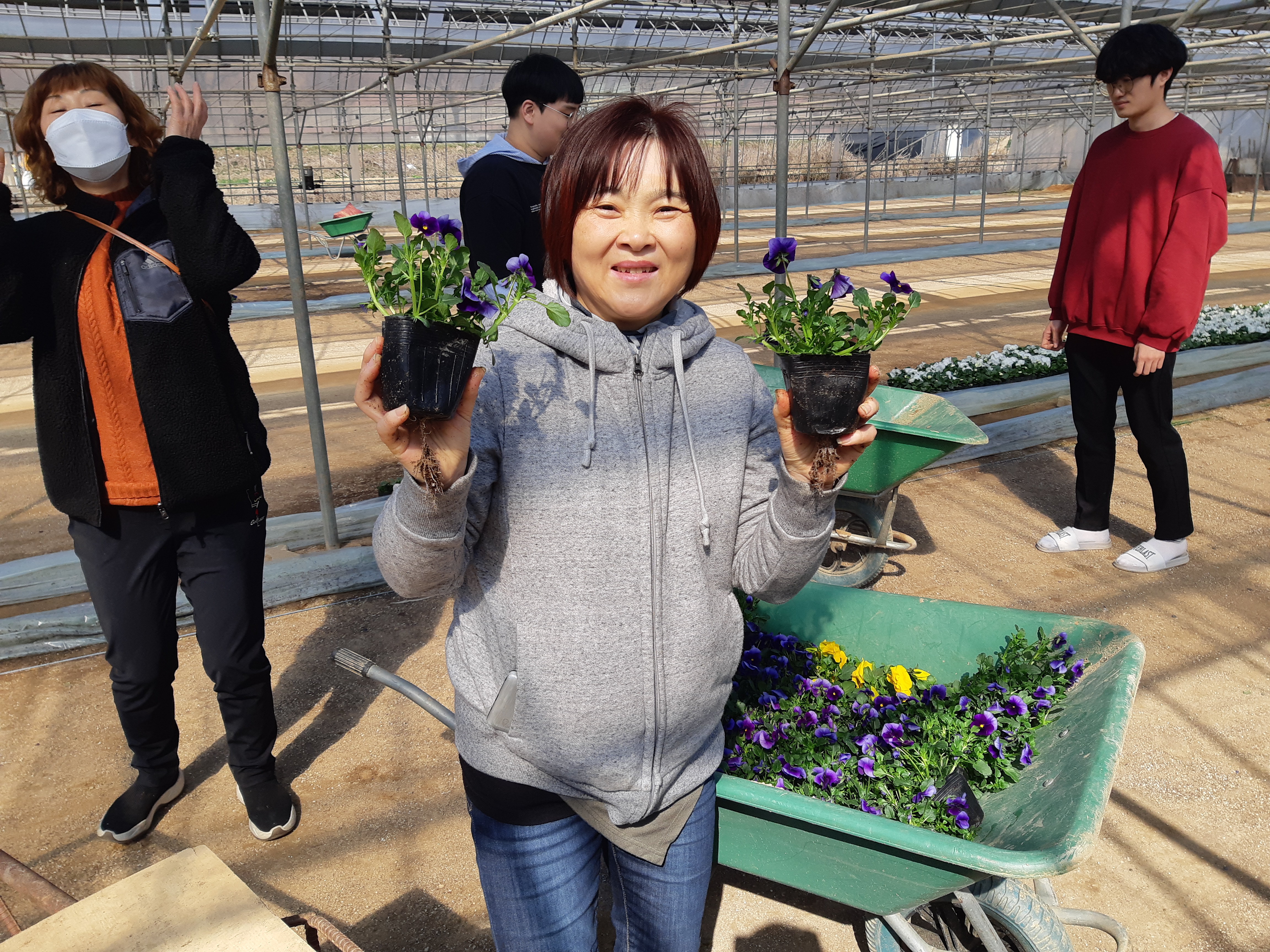“복지관 앞에 꽃이 듬성듬성 심어져 있던데,, 거기에 심을 것도 필요해.”