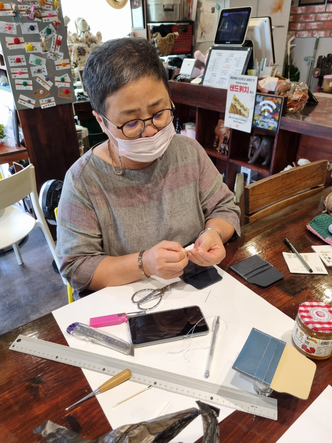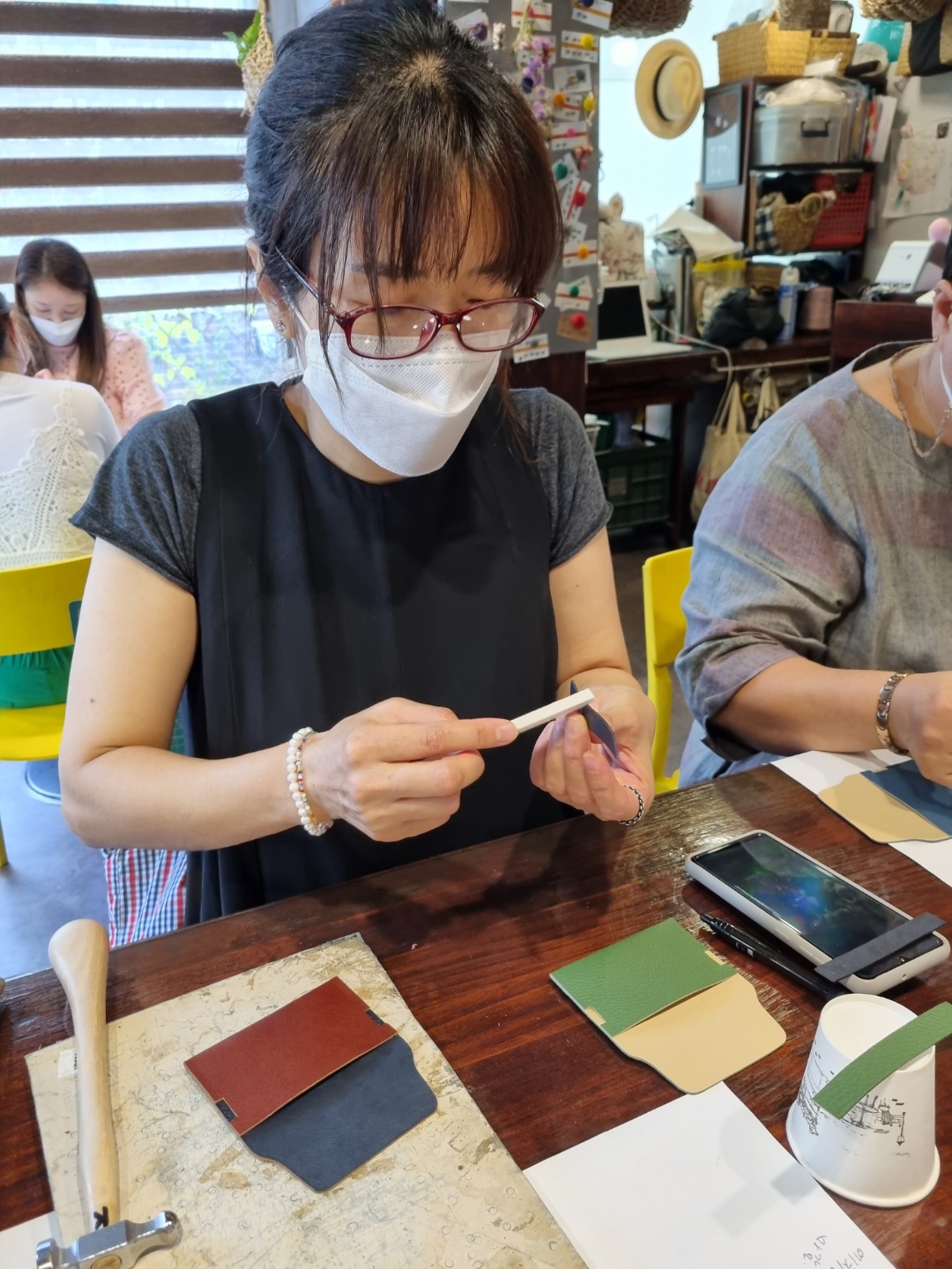 다들 집중해서 지갑을 만드십니다.