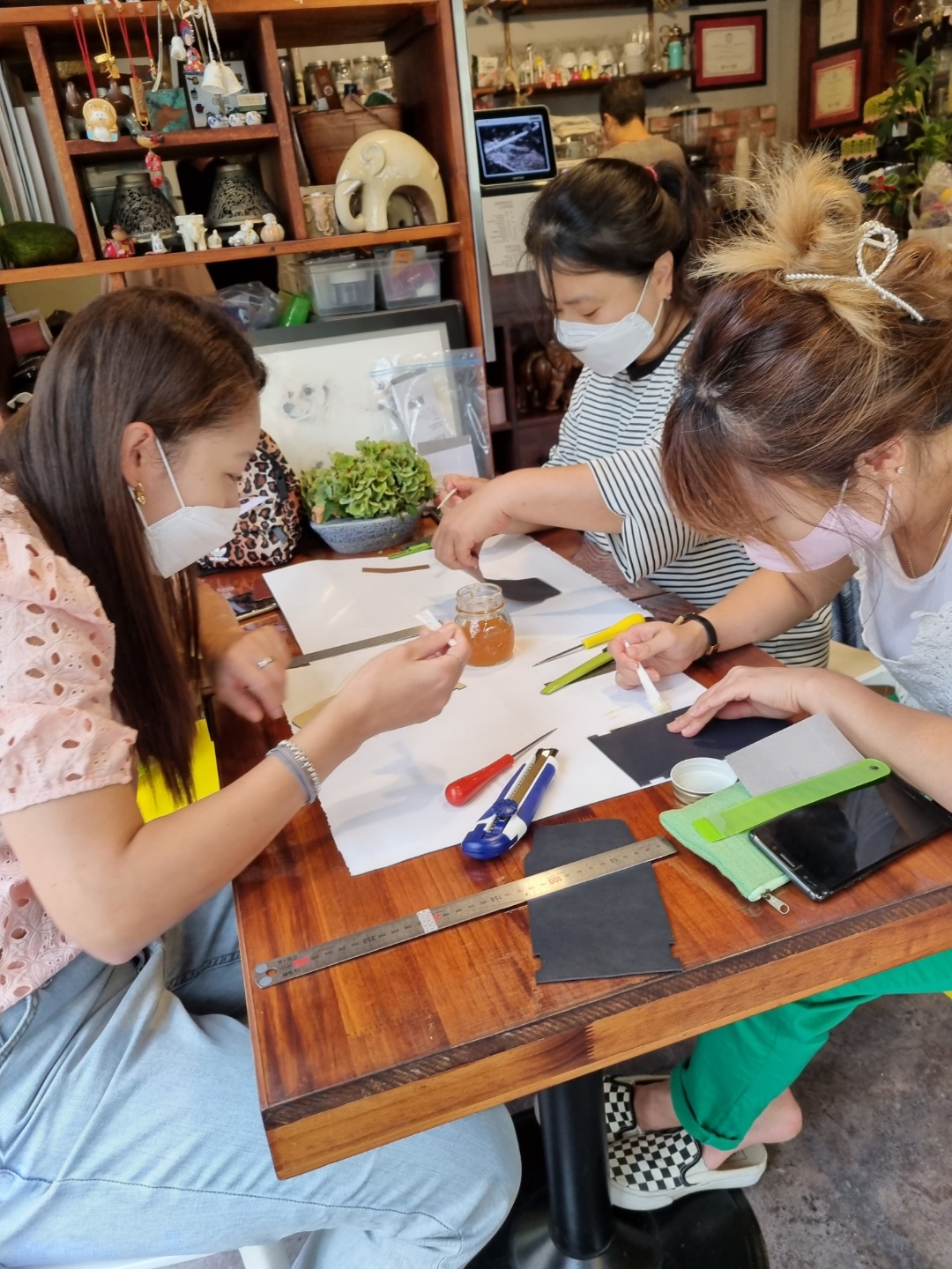 하반기 계획할 때 이야기 한 가죽공예 활동을 하는 날입니다. 지난번 회의때 사부작사부작 모임원들은 한가지 약속 한 것이 있습니다. 마을 강사분이 하는 수업에는 늦지 않기! 이 약속을 해서