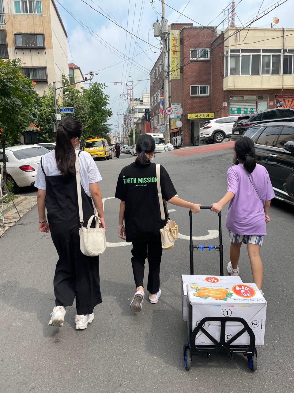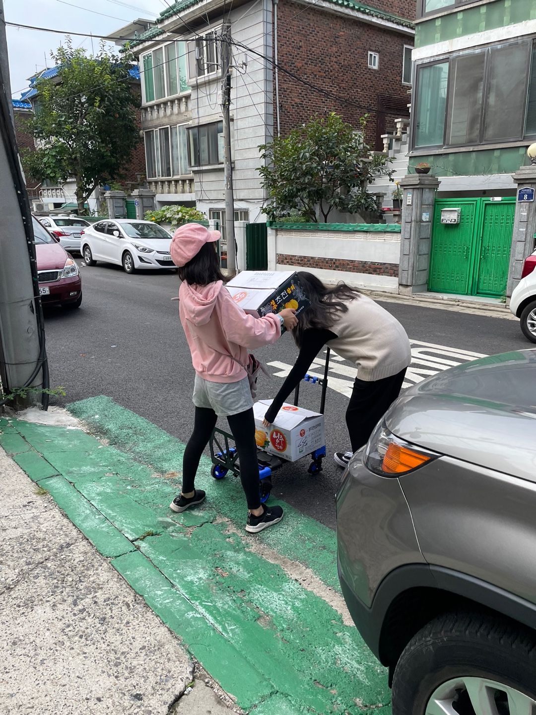 사진으로 봐도 신선함이 느껴지는 과일. 전달하는 과정에서 상처가 생기지 않게 차곡차곡 테트리스 하듯 포장을 하고 이제는 고강 1동에 비타민을 나누러 갈 시간입니다.