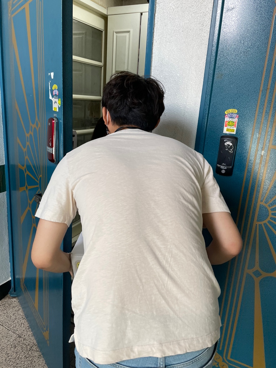 씩씩한 발걸음으로 도착한 고강1동 내 비타민을 부탁해 이용자 분의 집 에 도착했습니다. 걸음보다 더 가볍고 밝은 목소리와 함께 노크를 합니다.