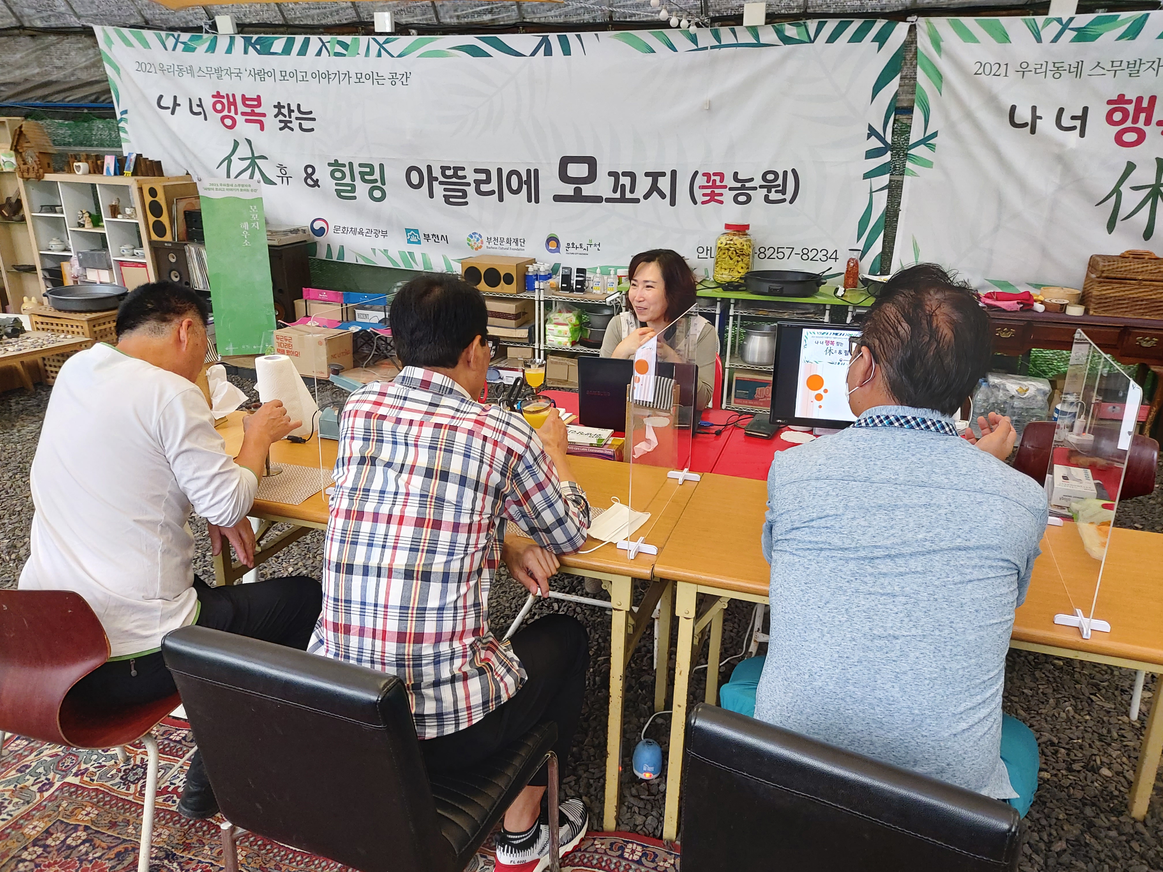 아뜰리에 선생님은 “그러게 진작에 오시라고 할때 오셨으면 더 예쁜 꽃들 보실 수도 있었는데 늦게 오셔가지고 다 지고 있잖아요. 아무튼 이렇게 자라게 된것도 다 선생님들 덕분이에요. 모꼬지에서 이렇게 프로그램을 할 수 있었던 것도 여기 계신분들 도움 없었으면 할 수 없었을 거에요. 감사해요.”