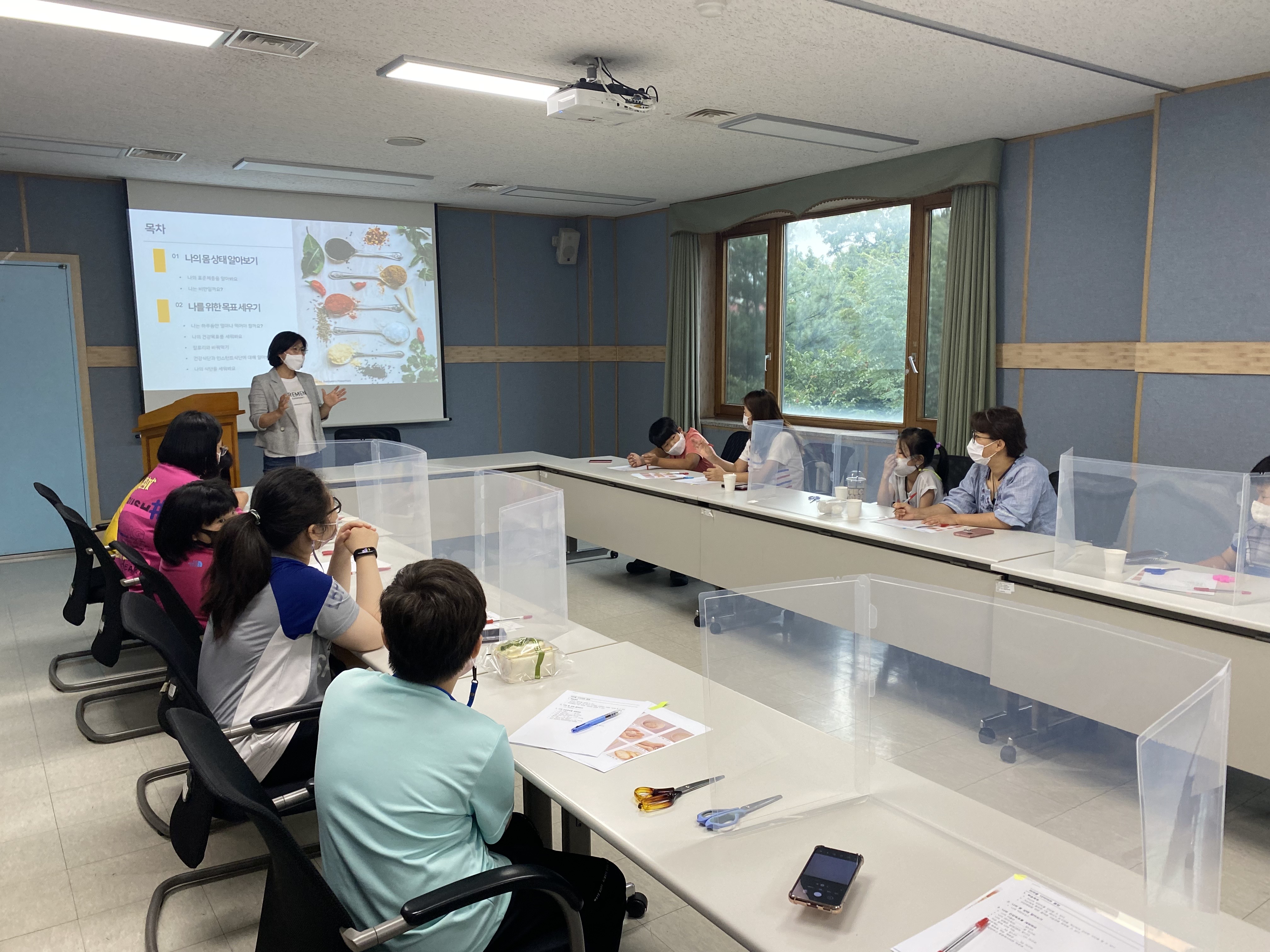 오늘은! 엄마와 아이가 함께, 영양사에게 직접 교육을 듣는 날입니다-* 5가정이 참여해주셨습니다.