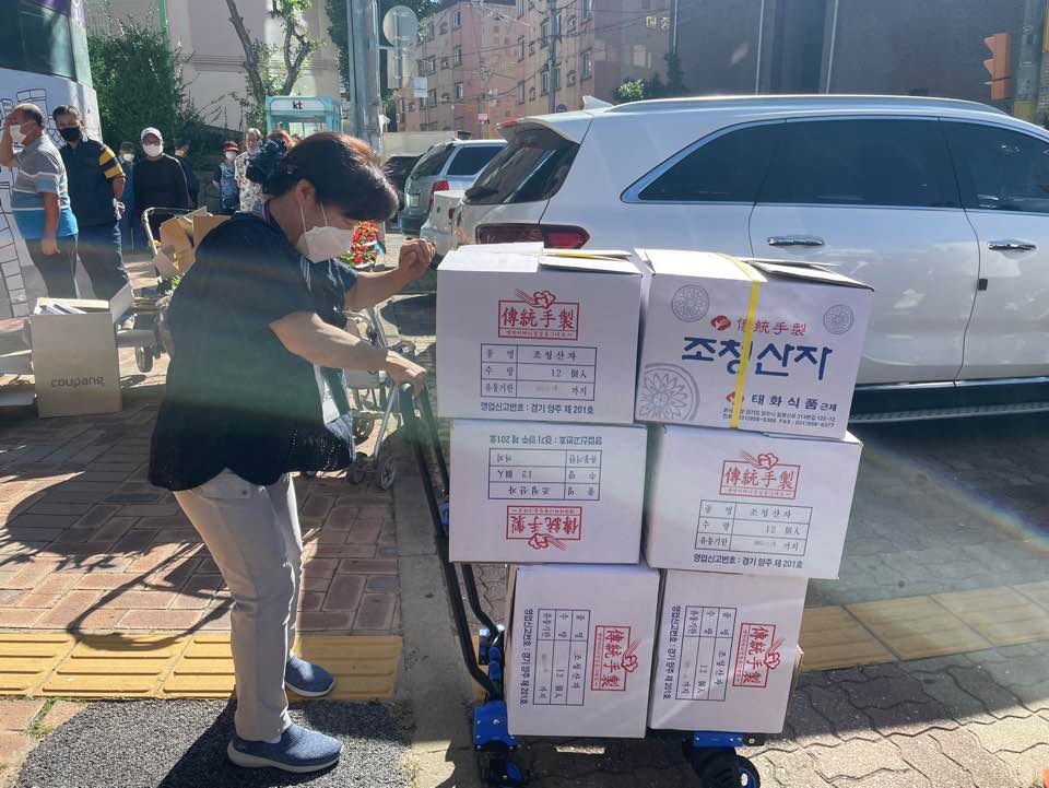 이번 추석 선물은 어르신뿐만 아니라 가정 인원 수가 많거나 코로나로 힘든 상황을 겪고 있는 가정을 드리다보니 물품을 선정하는 것도 더 많이 고민하게 되었습니다. 특히 시장에서 함께 해주시는 만큼 더 신선한 제품을 하기 위해 당일 포장, 당일 전달을 목표로 상인분들에게도 좋은 제품, 신선한 것으로 행사 당일 오전에 배송을 부탁드렸습니다.