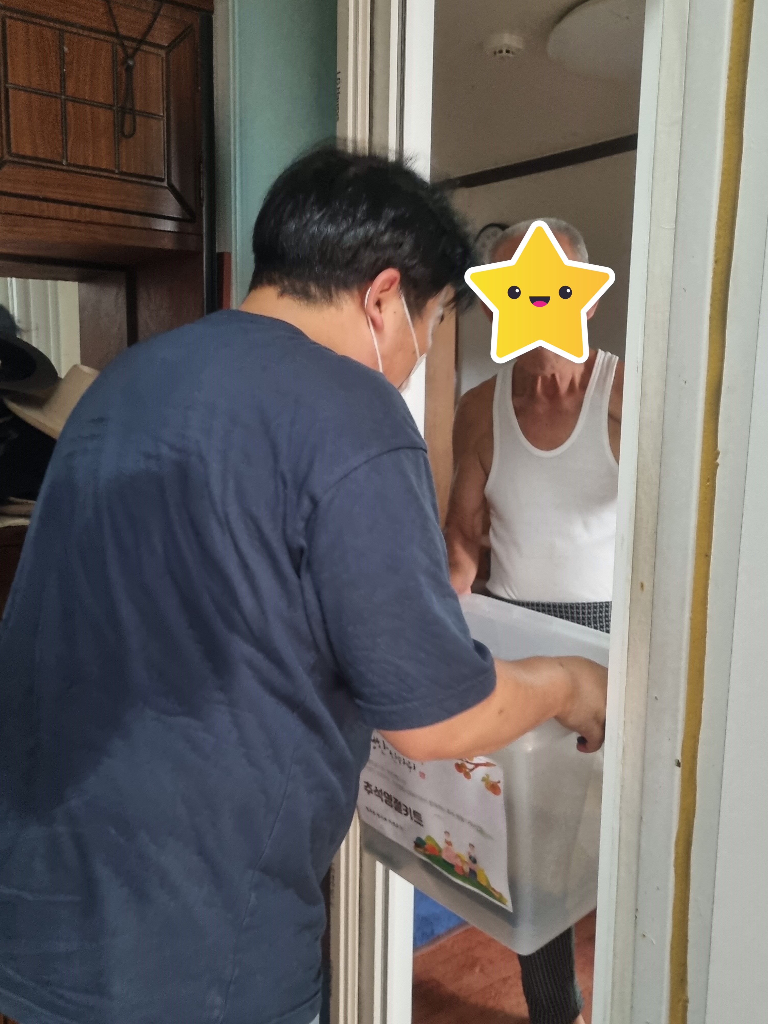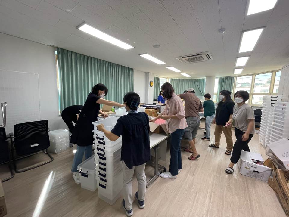 복지관의 모든 차량이 각 마을로 배달을 위해 총 출동! 직원과 실습생이 짝을 이루어 배송을 했는데요, 이번에 새로 들어온 전기트럭과 모닝, 스타렉스 차 안 가득 키트를 실어 출발! 더운 오후 각 가정으로 배달하느라 수고 많으셨습니다!