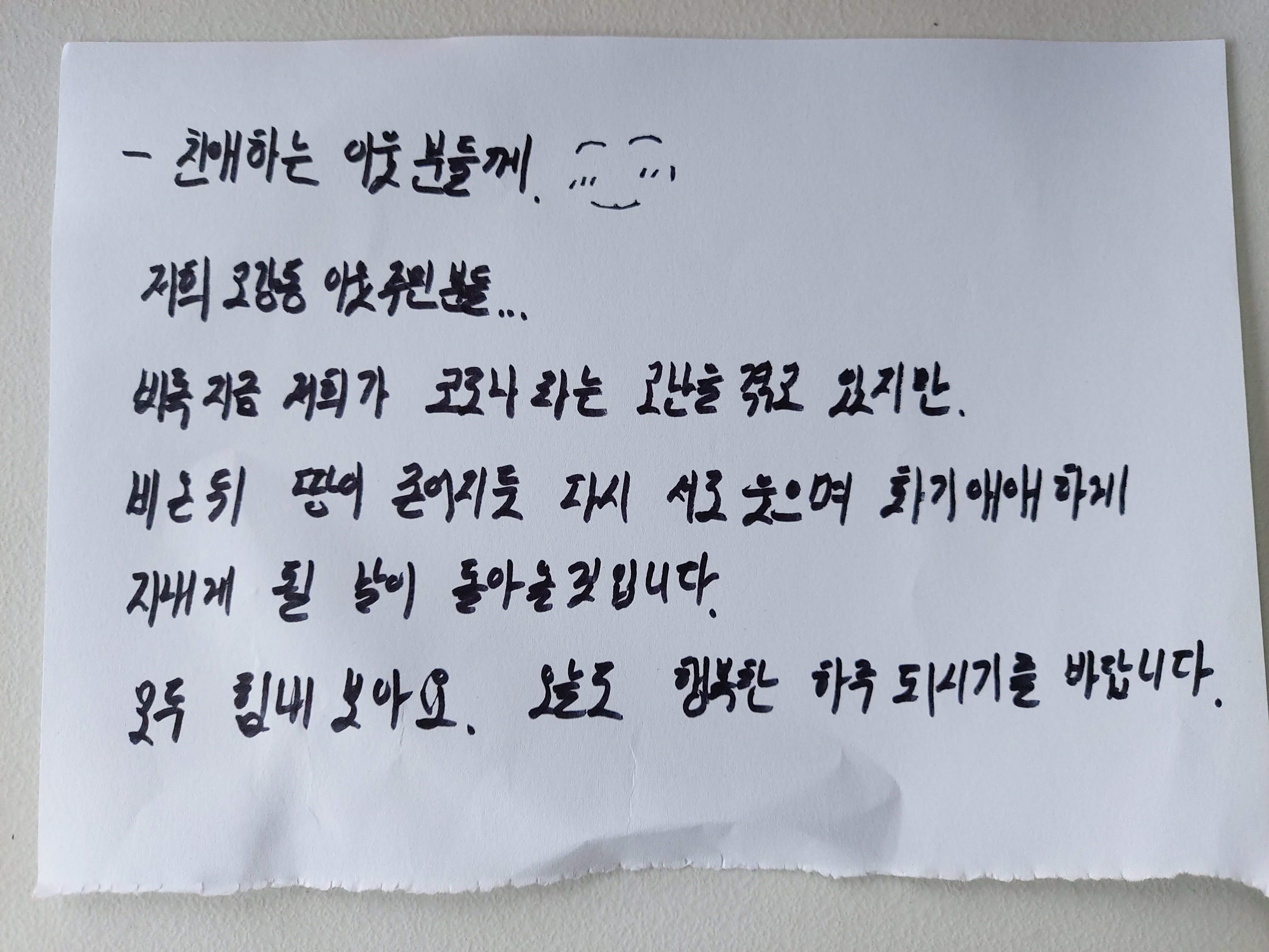 예쁘게 색깔도 넣어주셔서 조심하라는 인사도 나눠주시는 주민...