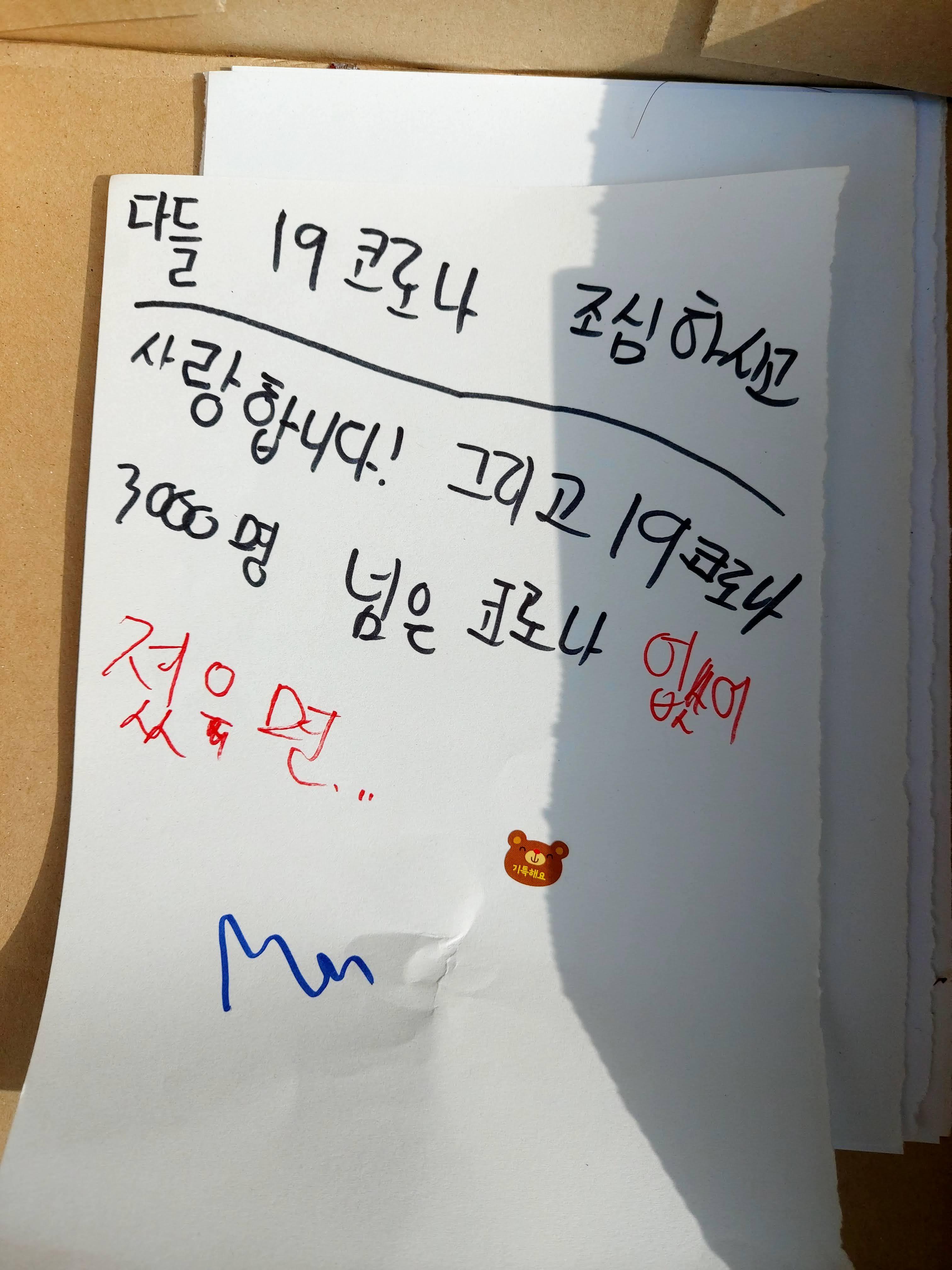 예쁘게 색깔도 넣어주셔서 조심하라는 인사도 나눠주시는 주민...