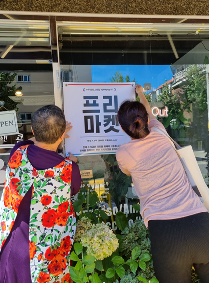 “프리마켓에대한 의미를 말로 설명하는 것도 좋지만 홍보지를 만들어서 궁금해하시는 분들에게 보여드려요.”