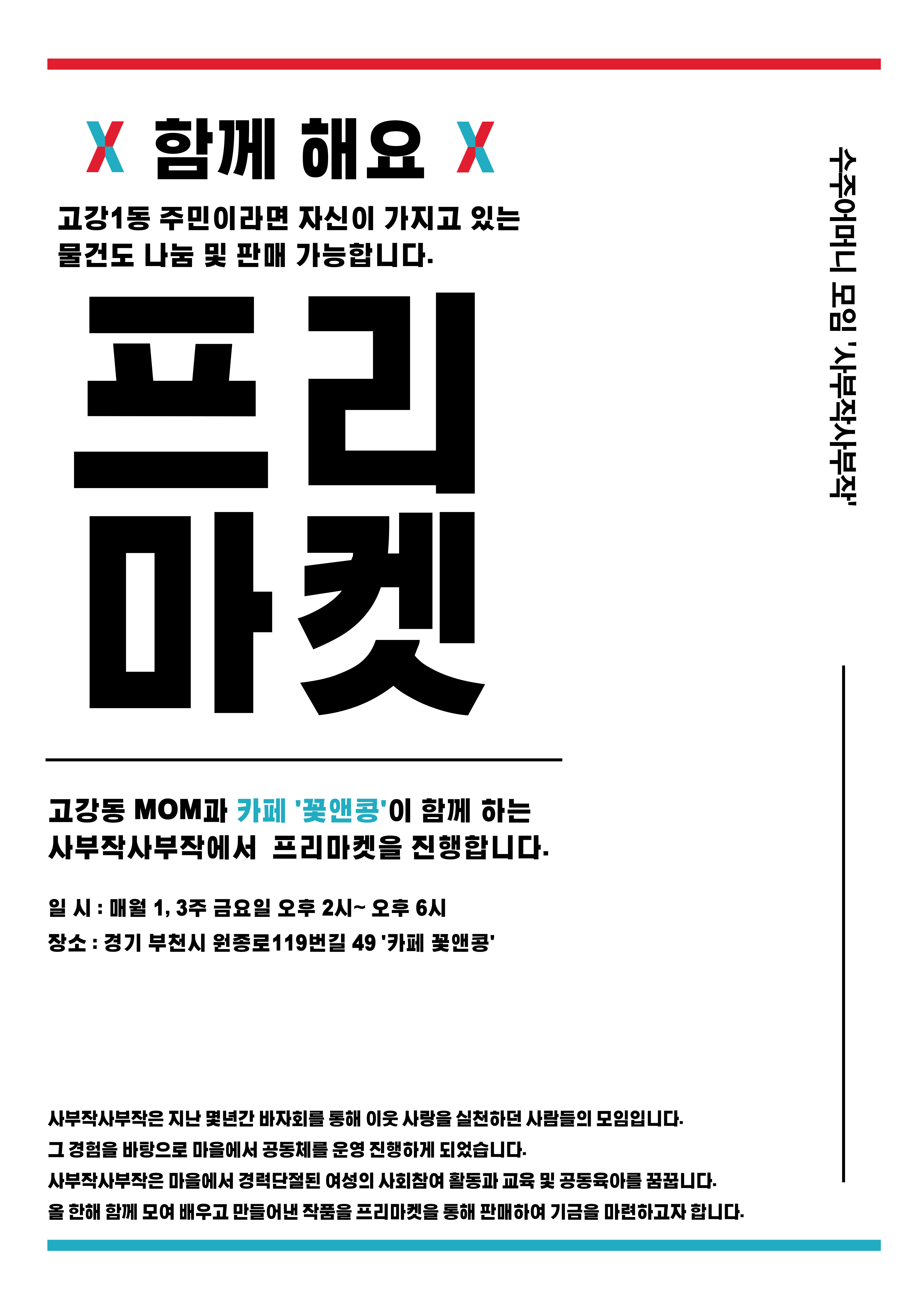 사부작사부작 모임과 프리마켓에 대한 의미를 담은 홍보지를 제작하자고 합니다.