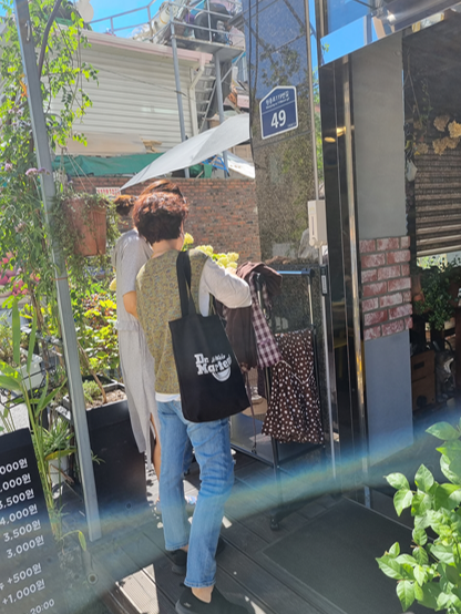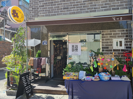 카페에서 옷도 입어보고 거울도 보고 마을에 있는 공간에서 바자회를 하니 좋은 점이 많습니다.