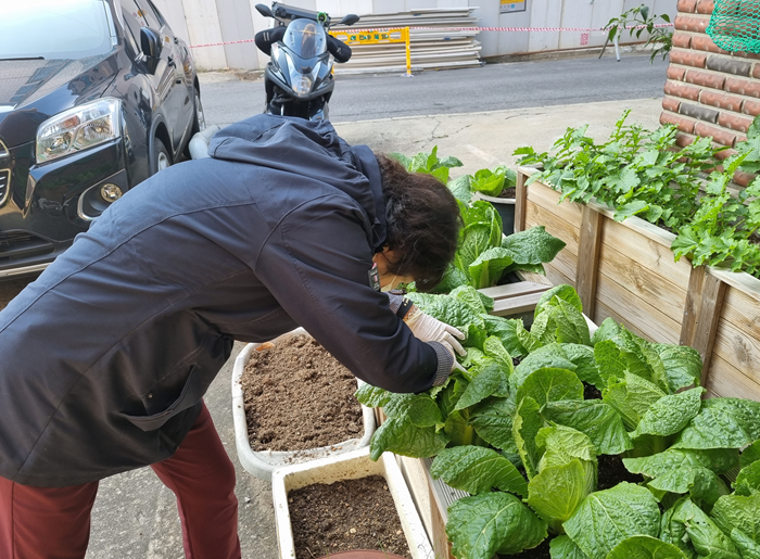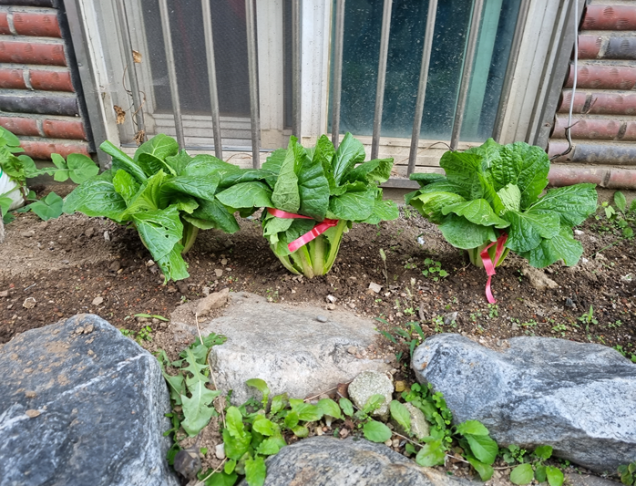 ‘이곳에 있는 텃밭이 해가 잘 안들어서 못자라는 거 같아, 빌라 앞 텃밭은 잘자라는데,