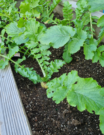 텃밭상자 안에 있는 무와 배추가 잘 자라고 있는지 보러갑니다.