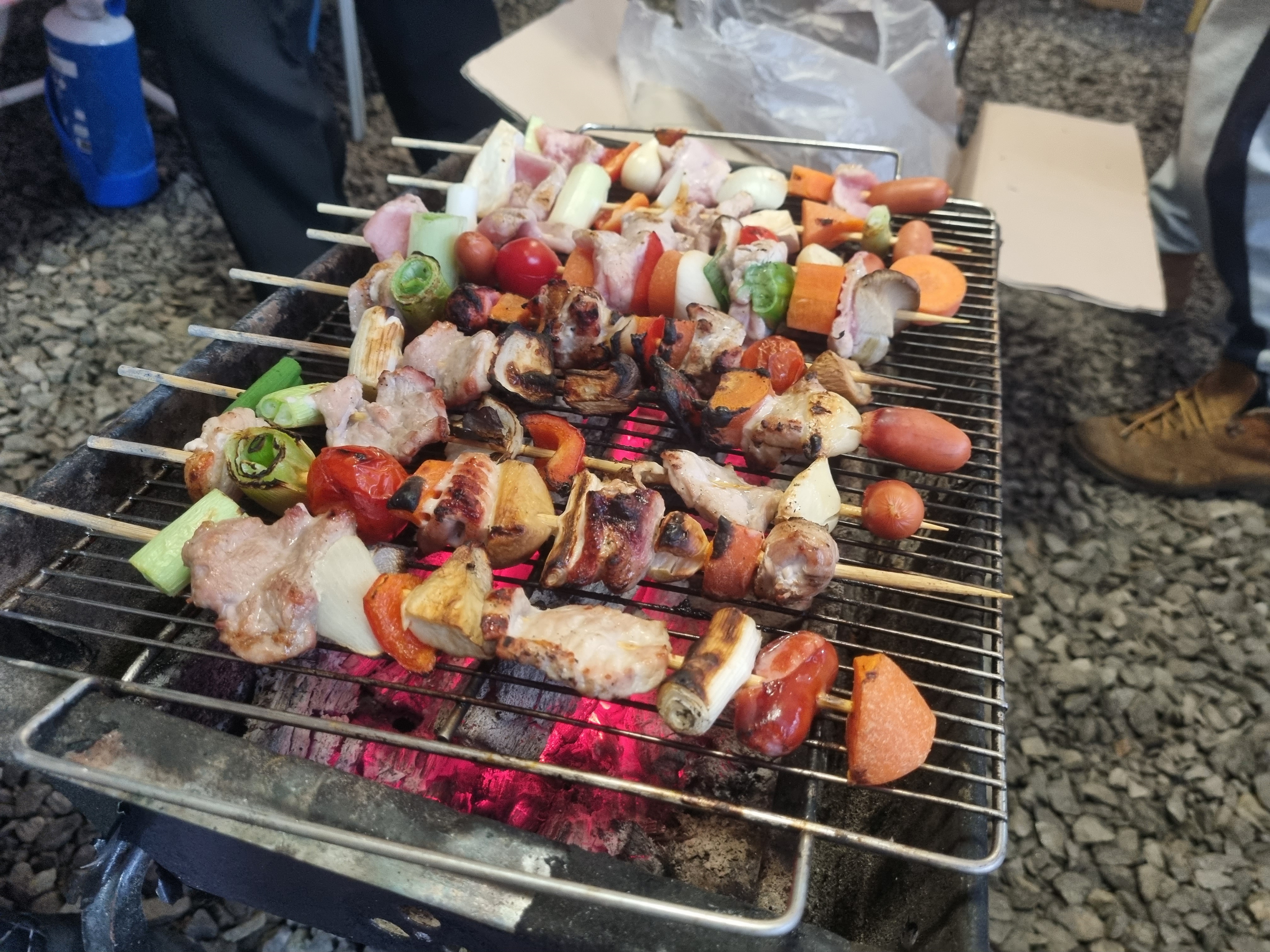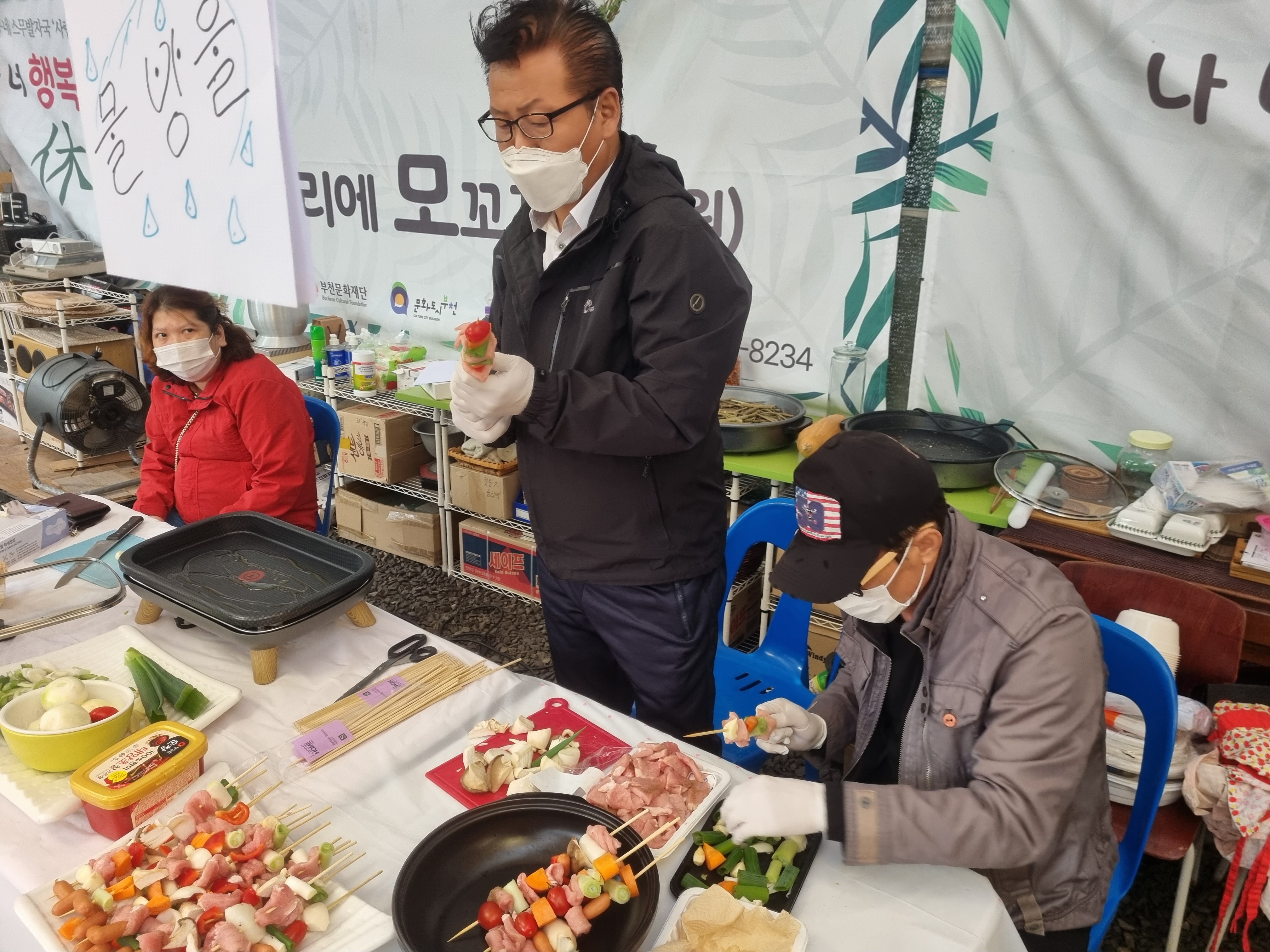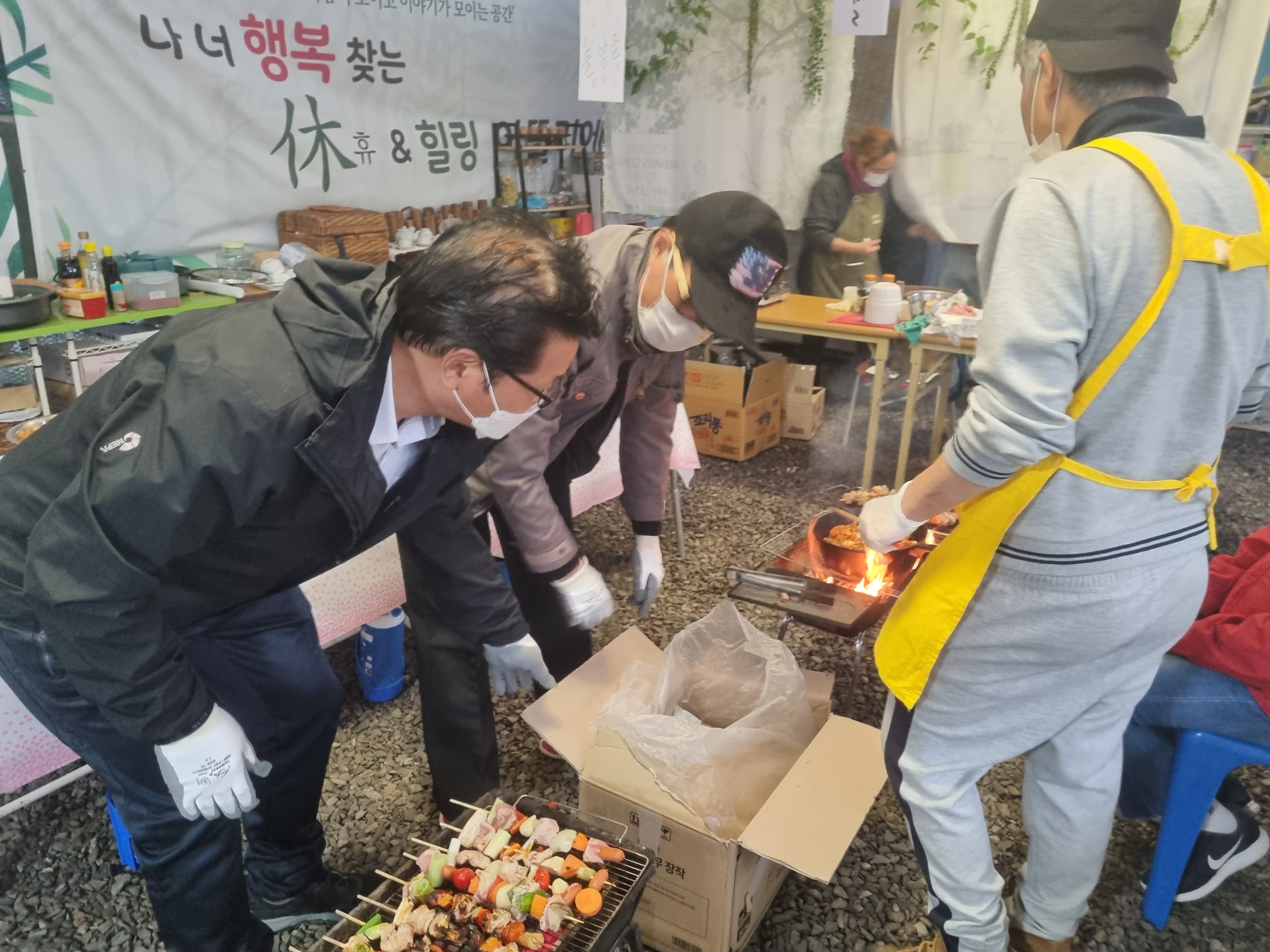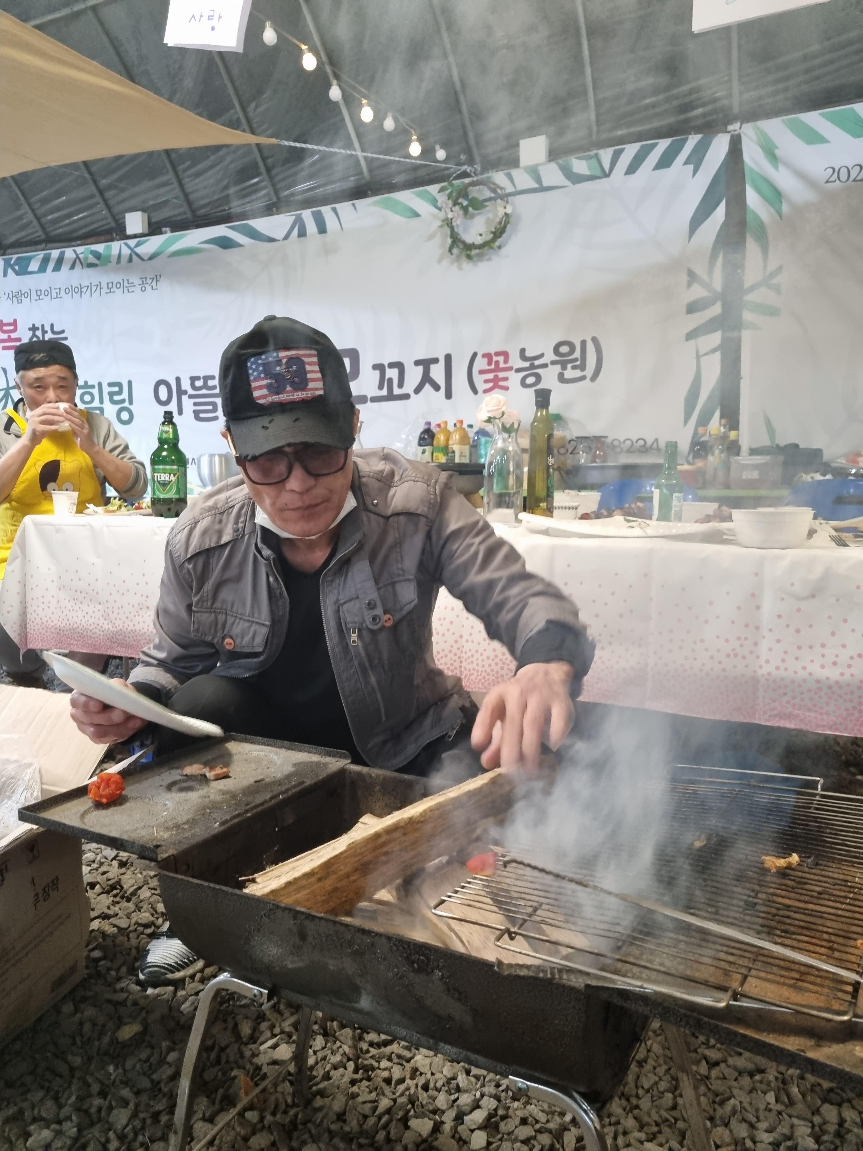 우리 중장년 키다리 아저씨(형님)들도 빠질 수 없죠. 꼬치구이로 준비하신하고 하시네요.