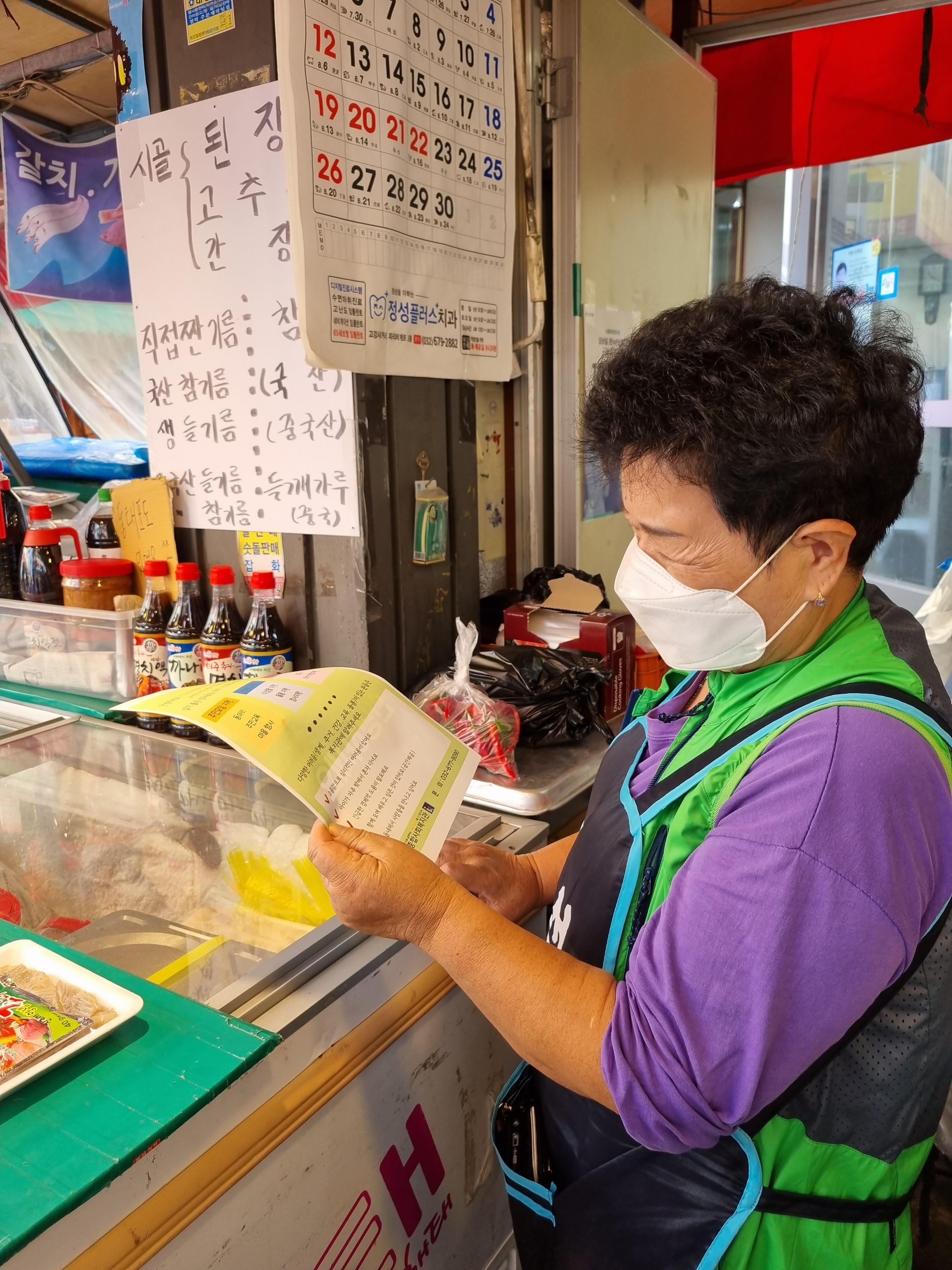 카페에 계신 상인회장님과 인사를 나눈 뒤 지난 추석 행사에 관한 주민 여러분의 긍정적인 반응을 전했습니다. 그 뒤에는 고강1동을 담당하고 있는 사회복지사들이 주민 여러분을 보다 가까운 곳에서 자주 뵙기 위해 기획한 ‘안녕하세요’의 취지를 설명드렸고, 홍보지를 전해드렸습니다.