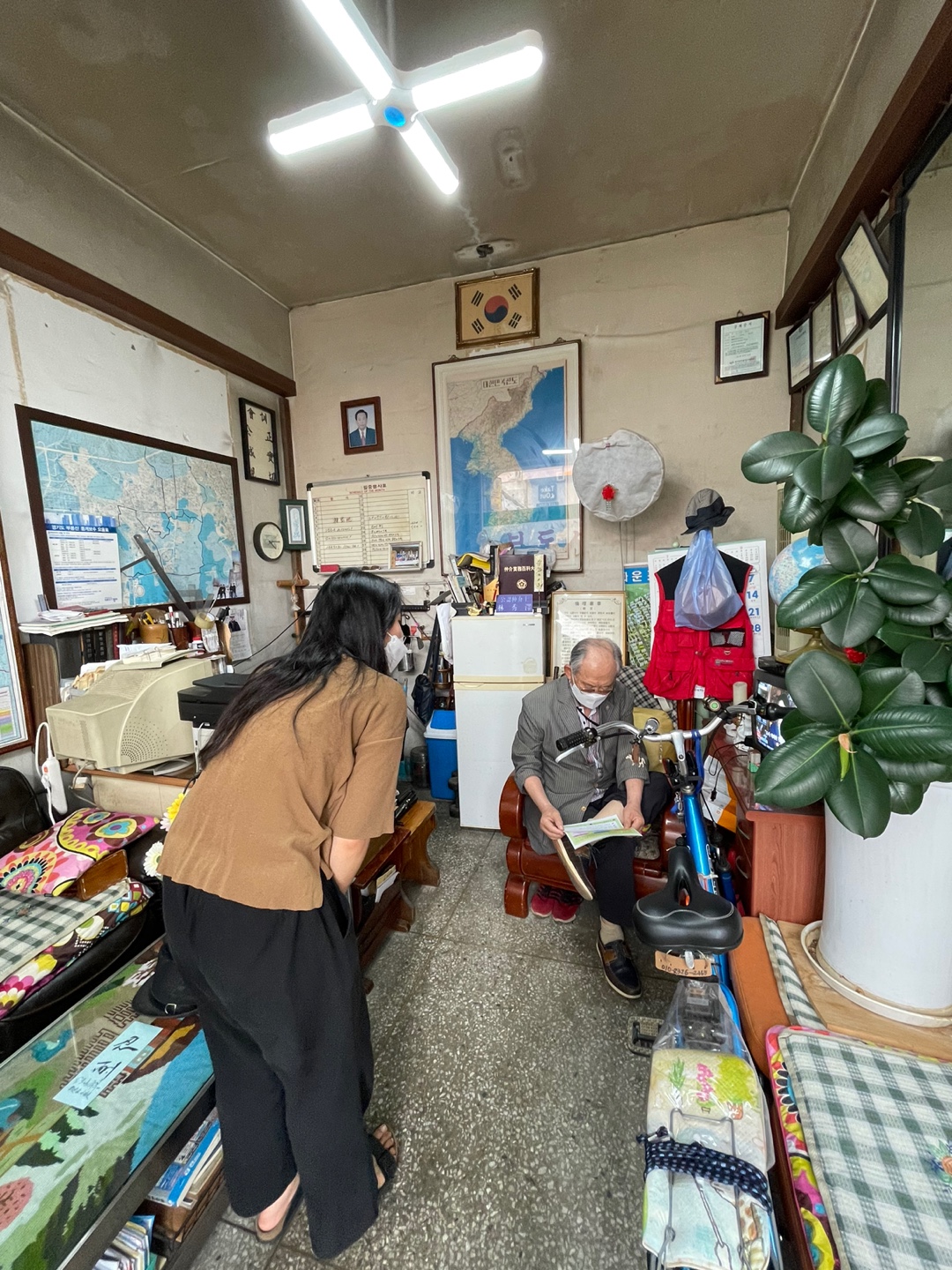 짧은 시간이나마 생활하시는 이야기를 듣을 뒤 인근 아파트의 경비실로 인사를 드리러 갑니다.