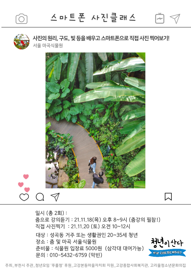 11월9일 ~ 21일까지 2주간성곡동 청년들을 위해 다양한 프로그램이 운영됩니다.