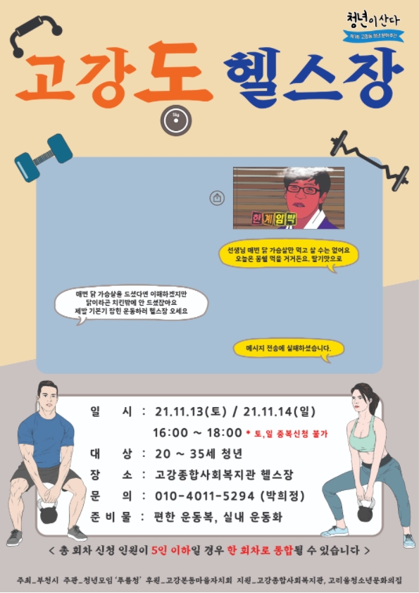 '제1회 고강동청년문화주간, 청년이산다'는 한국공항공사, 부천시, 부천문화재단, 고강본마을자치회의 지원으로