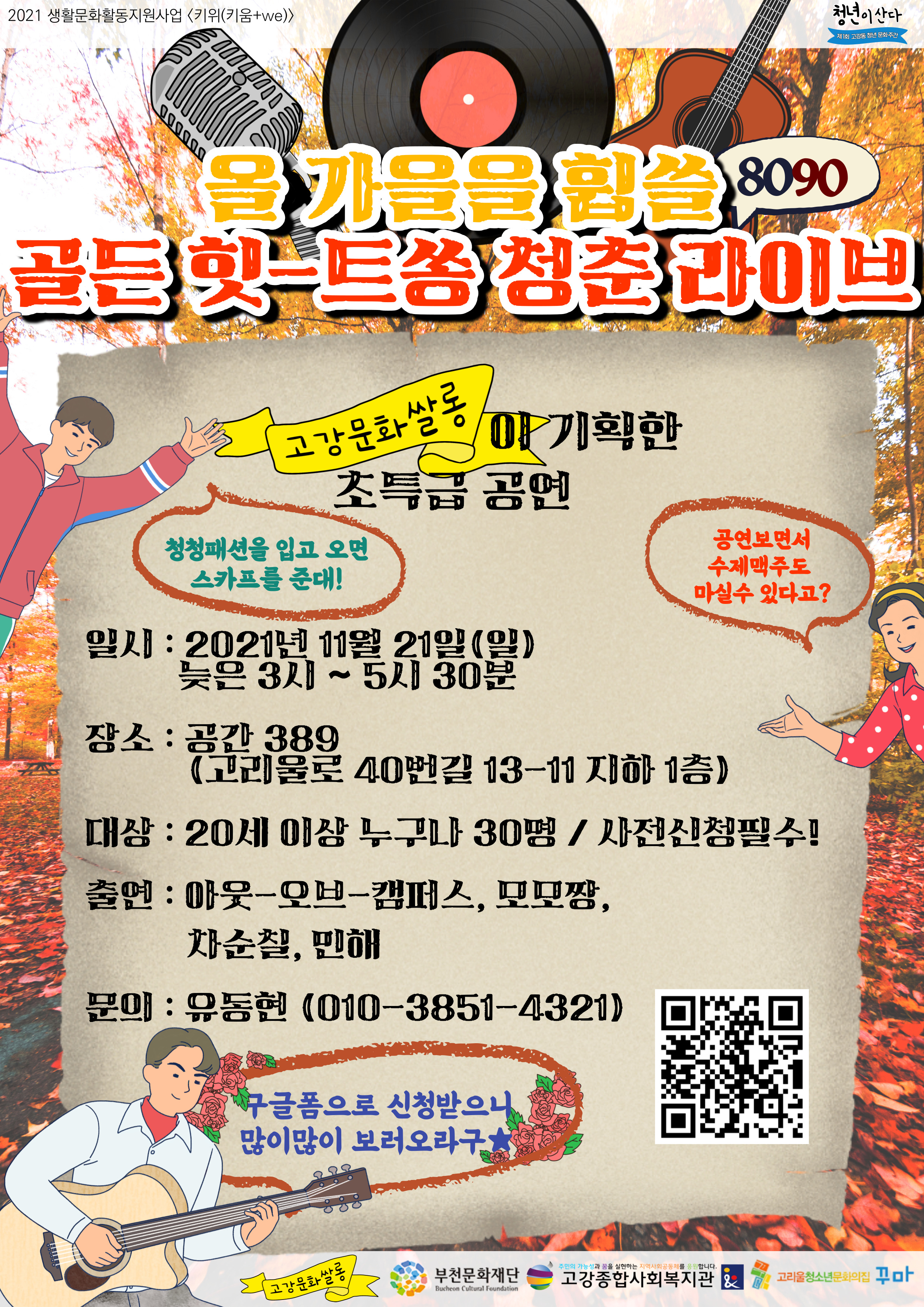 성곡동 청년모임 푸를청, 고강문화쌀롱, 고강종합사회복지관, 고리울청소년문화의집이 함께 운영합니다.