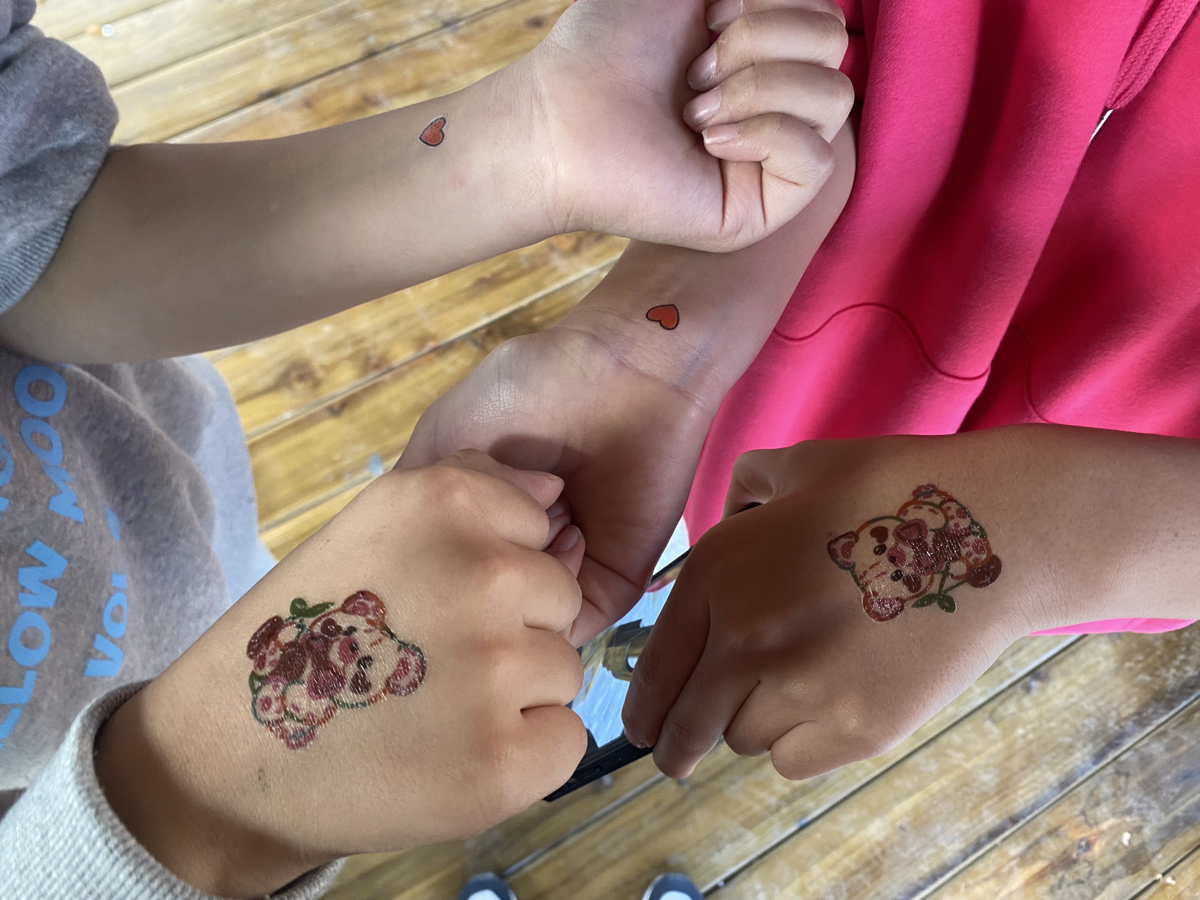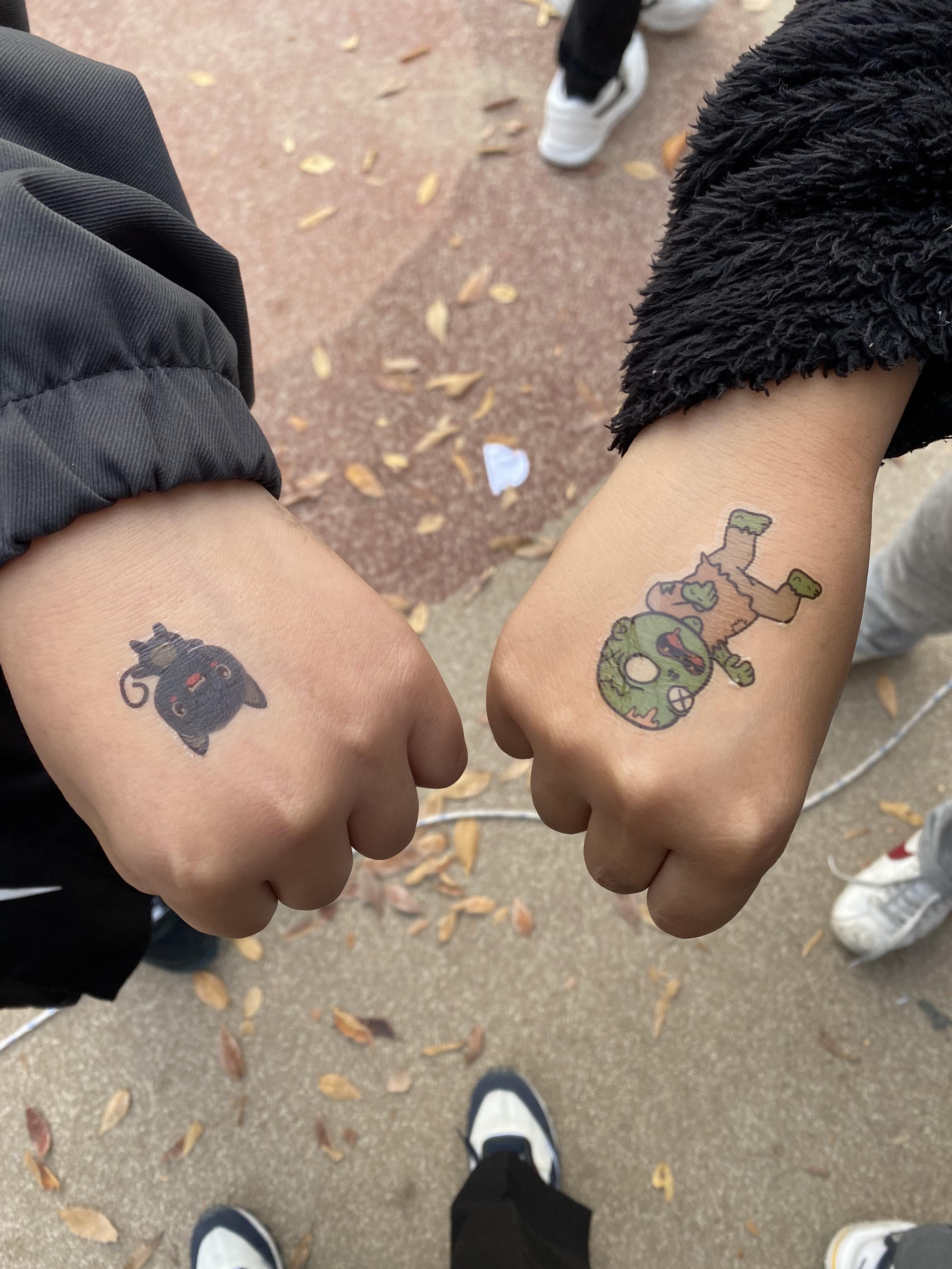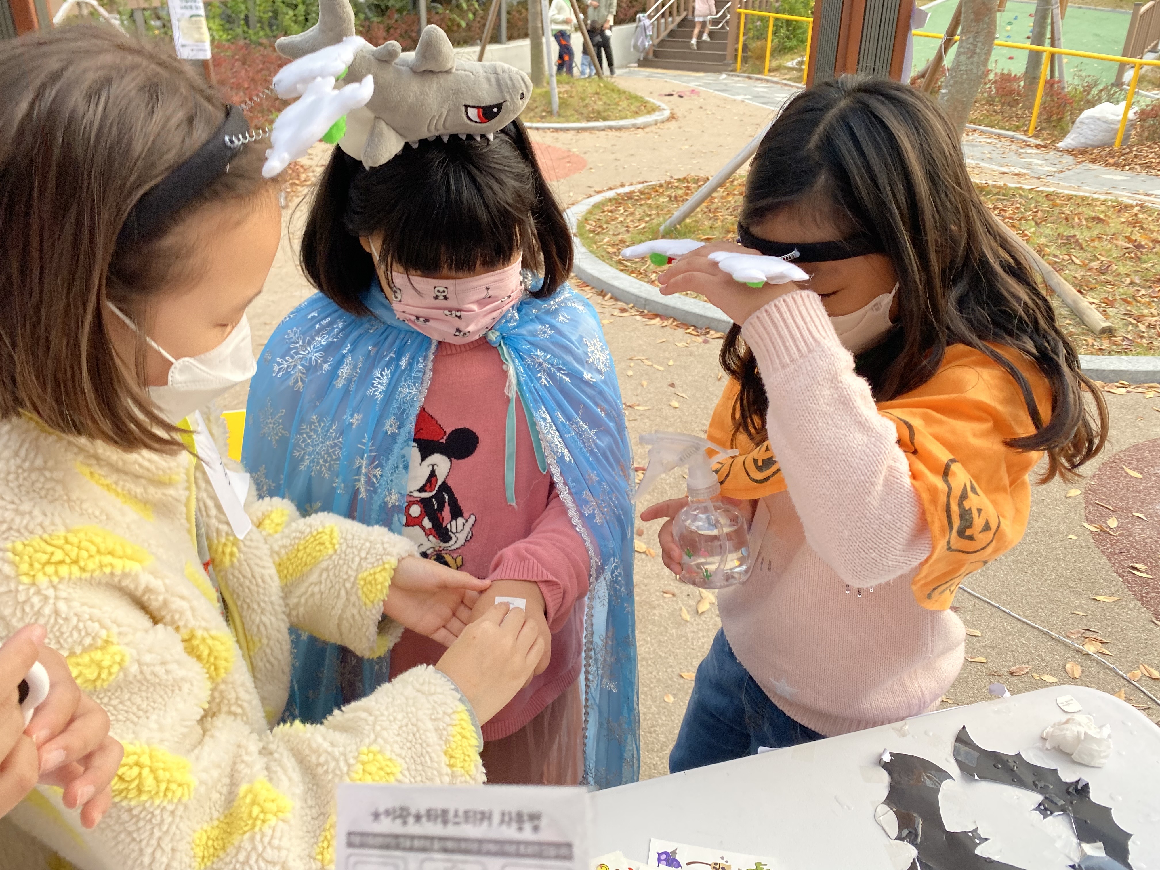 계속 타투를 붙여주어야 해서(아이들이 끊임없이 왔습니다. ) 힘들어하는 아이들에게