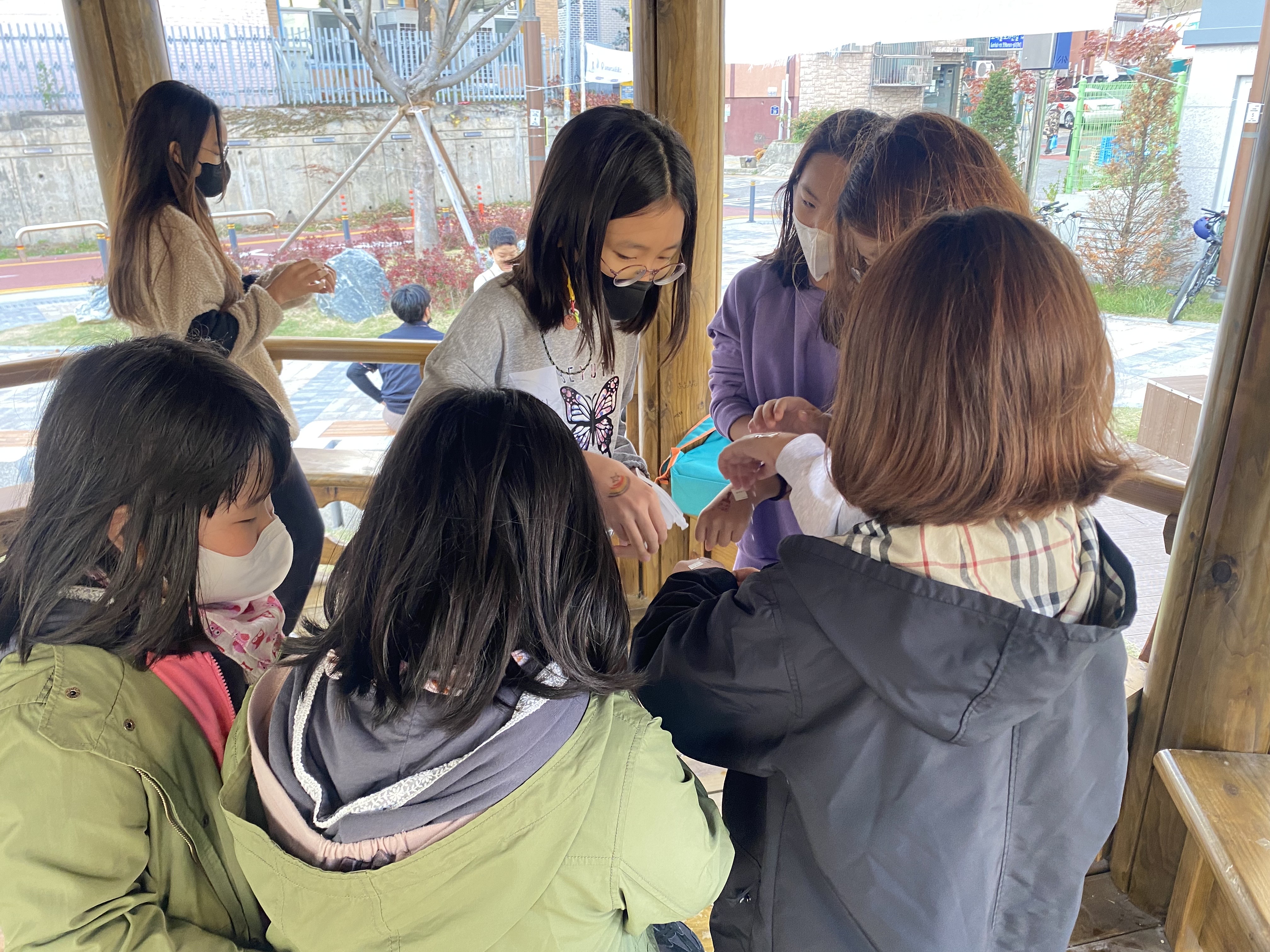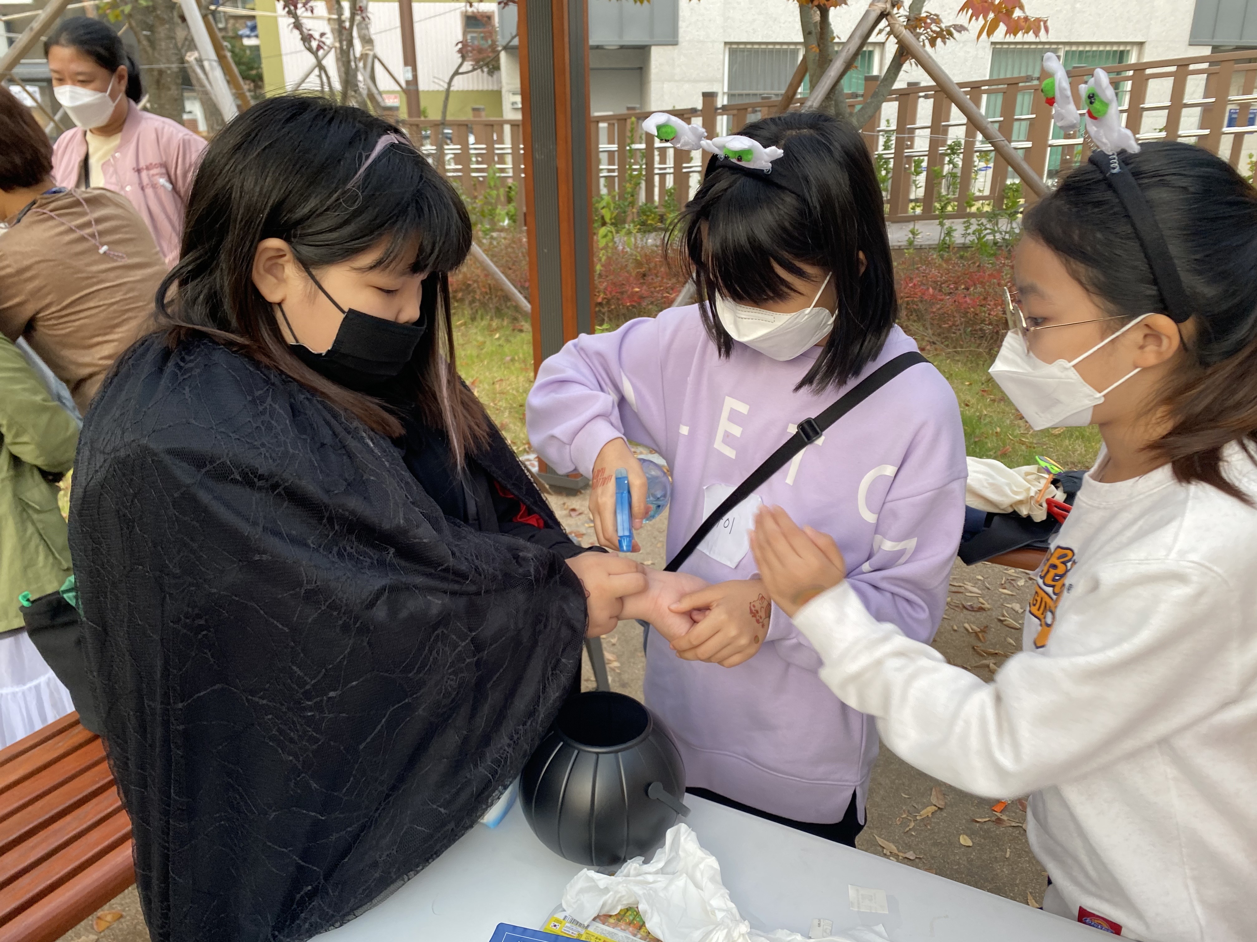 가온이와 다연이가 맡아서 타투 체험을 도와줬고