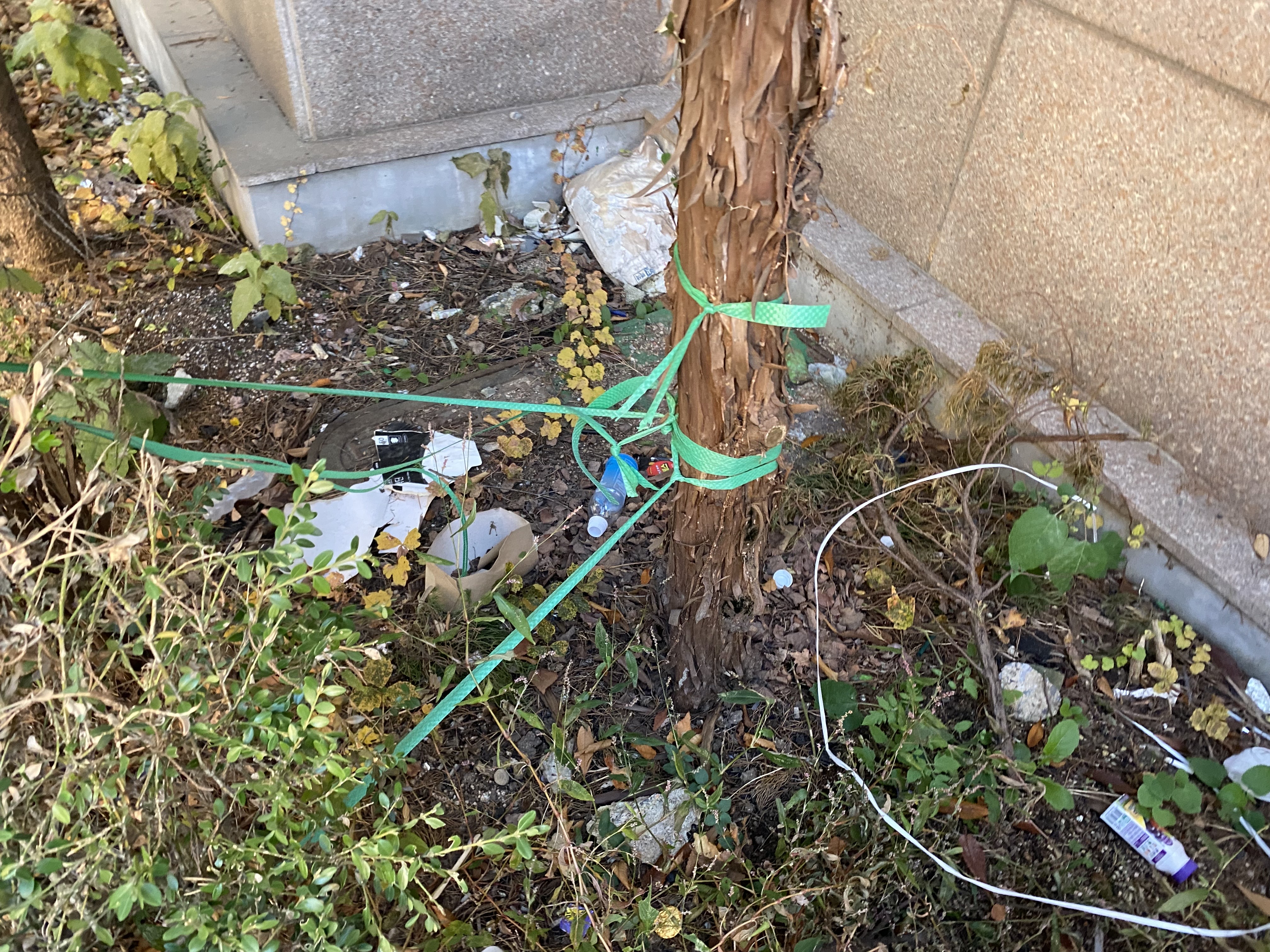 지정된 봉투에 넣어 쓰레기를 버려야 하는데 쓰레기들이 마구 흩어져 있어 보는 사람의 눈살도 찌푸려지는 곳입니다.