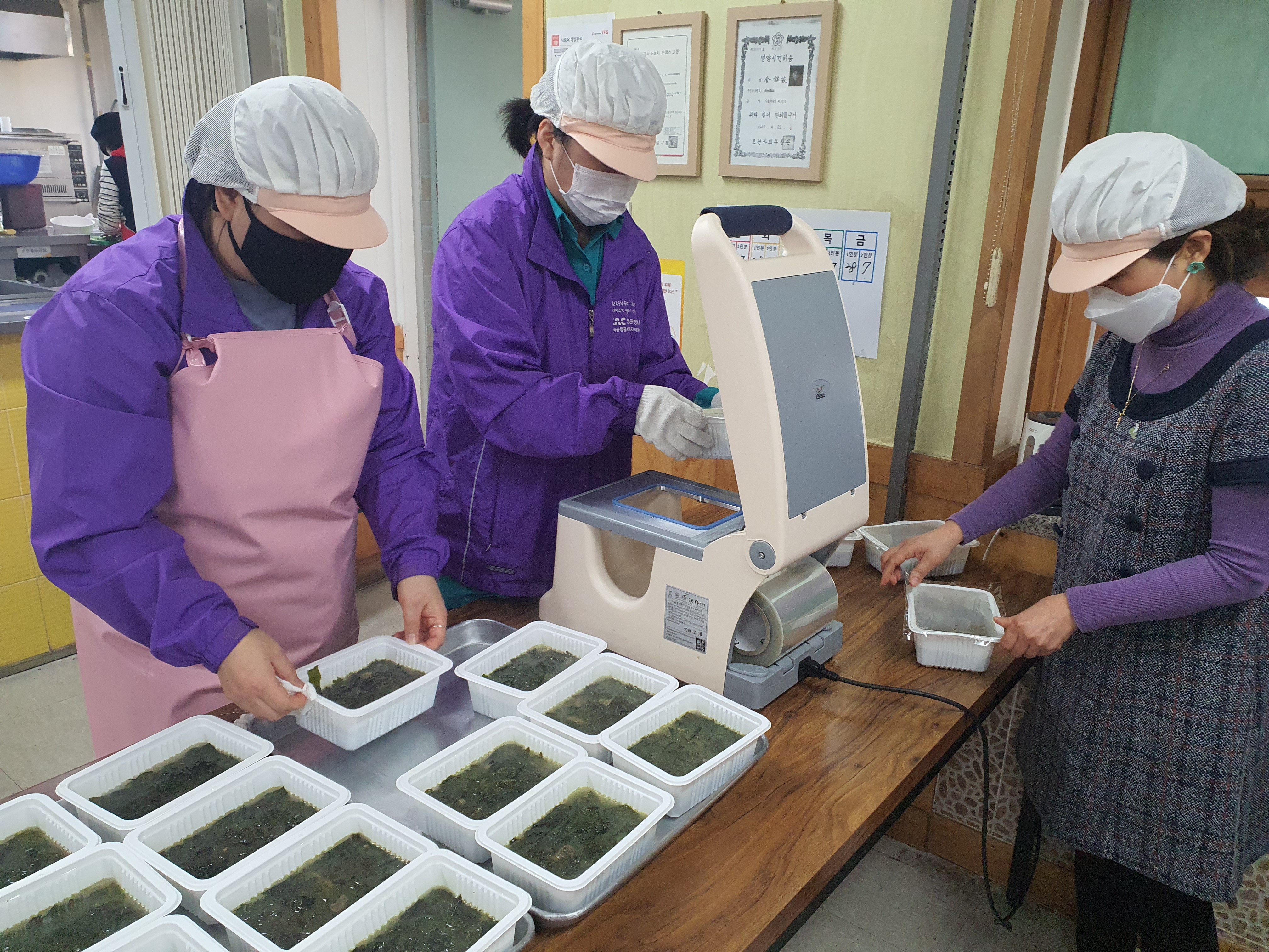 조리식품 비율을 높이기 위해서는 조리를 위한 인력이 추가로 필요한데, 기존 인력으로는 역부족이니 꾸준히 자원봉사활동을 해준 분들을 위주로 최소한의 조리인력으로 구성하였습니다. 그리고 복지관에서 가지고 있는 다회용기는 숫자가 부족하고 회수율이 낮을 수 있다는 판단으로 처음으로 일회용기 사용을 위한 실링기 구입을 추진하게 되었습니다.