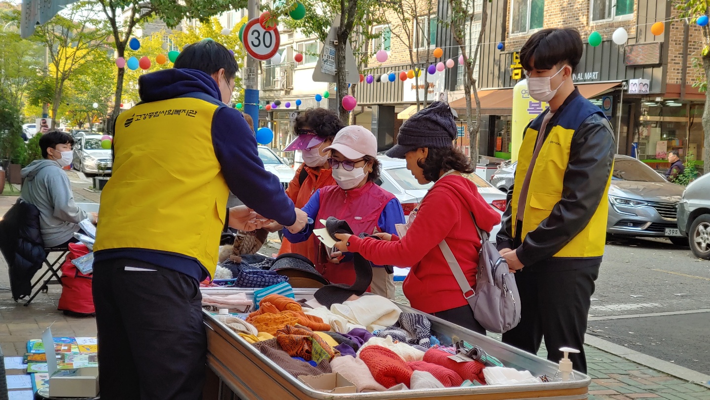 고강종합사회복지관에서 마을 복지 기금으로 사용하기 위해 겨울 모자, 레깅스, 스카프, 손수건 같은 의류 등의 판매가 이루어졌습니다. 아주 저렴한 가격, 전액 복지기금으로 사용한다는 점에서 더욱 따뜻한 겨울을 날 수 있을 것만 같습니다. (사족이지만 저도 스카프를 하나 샀는데 마음에 쏙 들어서 자주 매고 다닌답니다^-^)