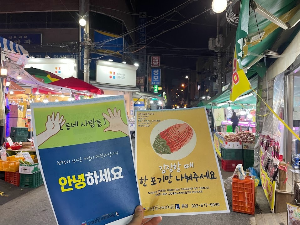 늦은 오후에 고강제일시장에 방문해 주민을 만나 인사 드리고, 복지관과 김장 캠페인을 알리고 왔습니다.