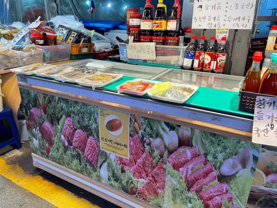 사장님께 인사 드리고 시장 안쪽으로 향하던 중 각종 젓갈을 판매하고 계신 사장님을 뵐 수 있었습니다. 김장하면 빼 놓을 수 없는 게 젓갈이다보니 이곳에도 부착하면 좋겠다 싶어 사장님께 여쭤 봤습니다.
