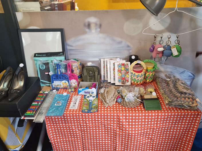 주민들이 모아준 물품과 (주)선미에서 후원해준 물품들이 호도스 카페 안에 가득합니다.
