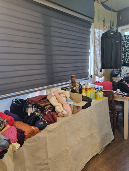 주민들이 모아준 물품과 (주)선미에서 후원해준 물품들이 호도스 카페 안에 가득합니다.