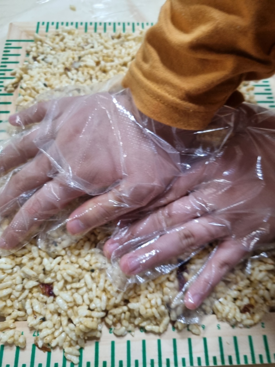 “아이가 강정을 꾹꾹 누르는게 힘들었지만 그래도 모양이 만들어지는게 신기하고 잘못 만들어서 실패를 많이 해서 아쉽지만 즐겁게 재미있는 시간이였습니다.“