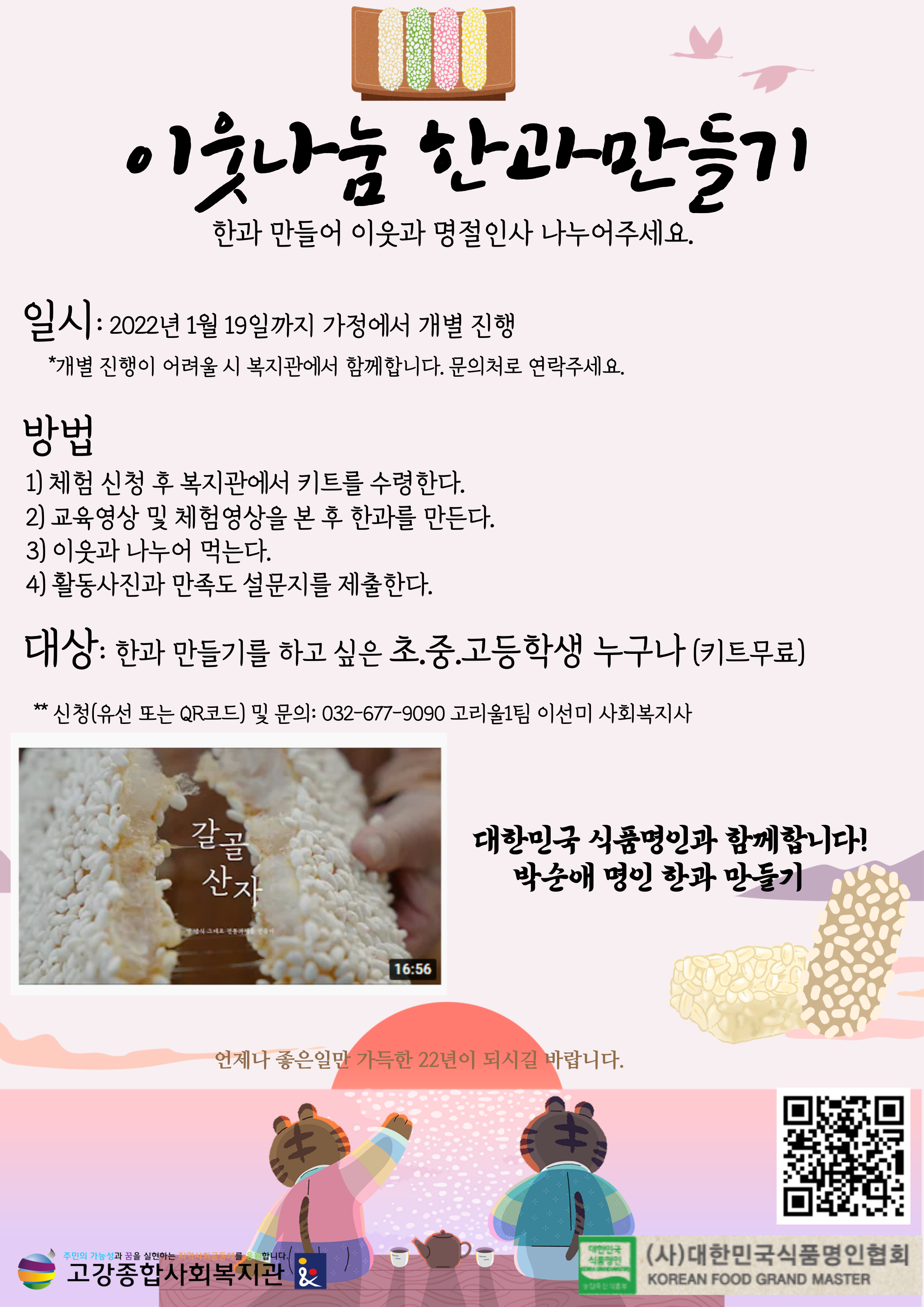 한과 만들어 이웃과 명절인사 나누어주세요. <이웃나눔 한과 만들기>