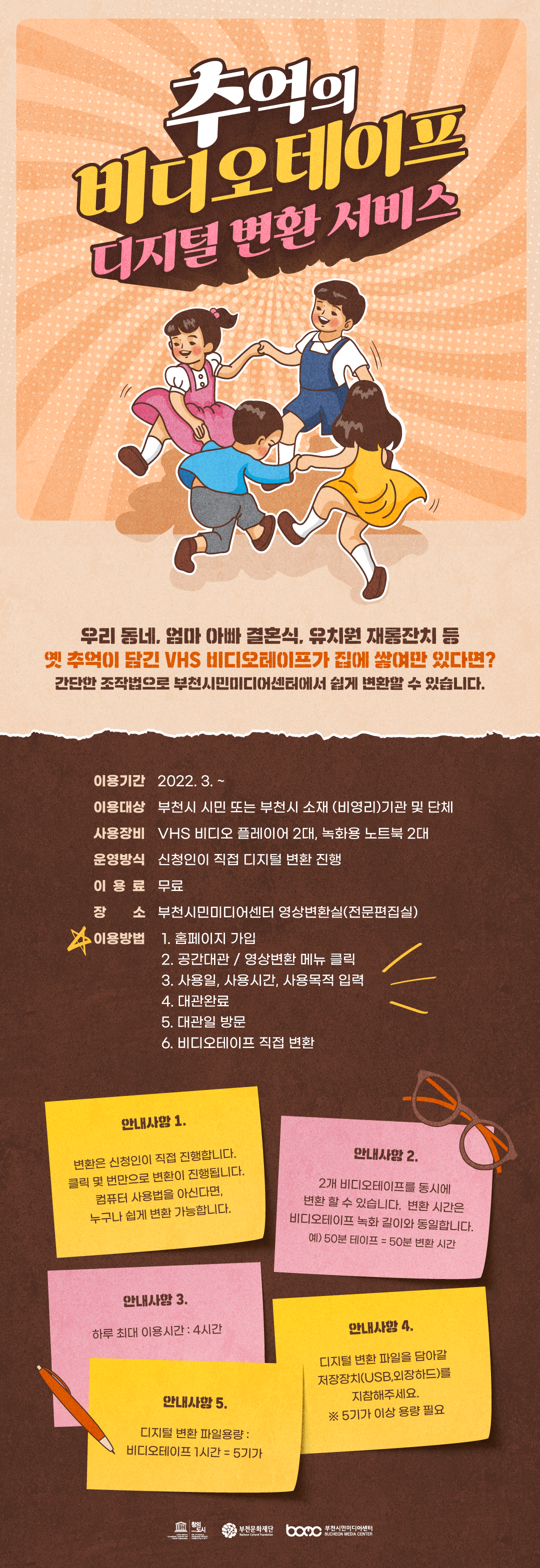 사용일에 방문하여 설명을 듣고, 비디어테이프를 직접 디지털로 변환해보세요!