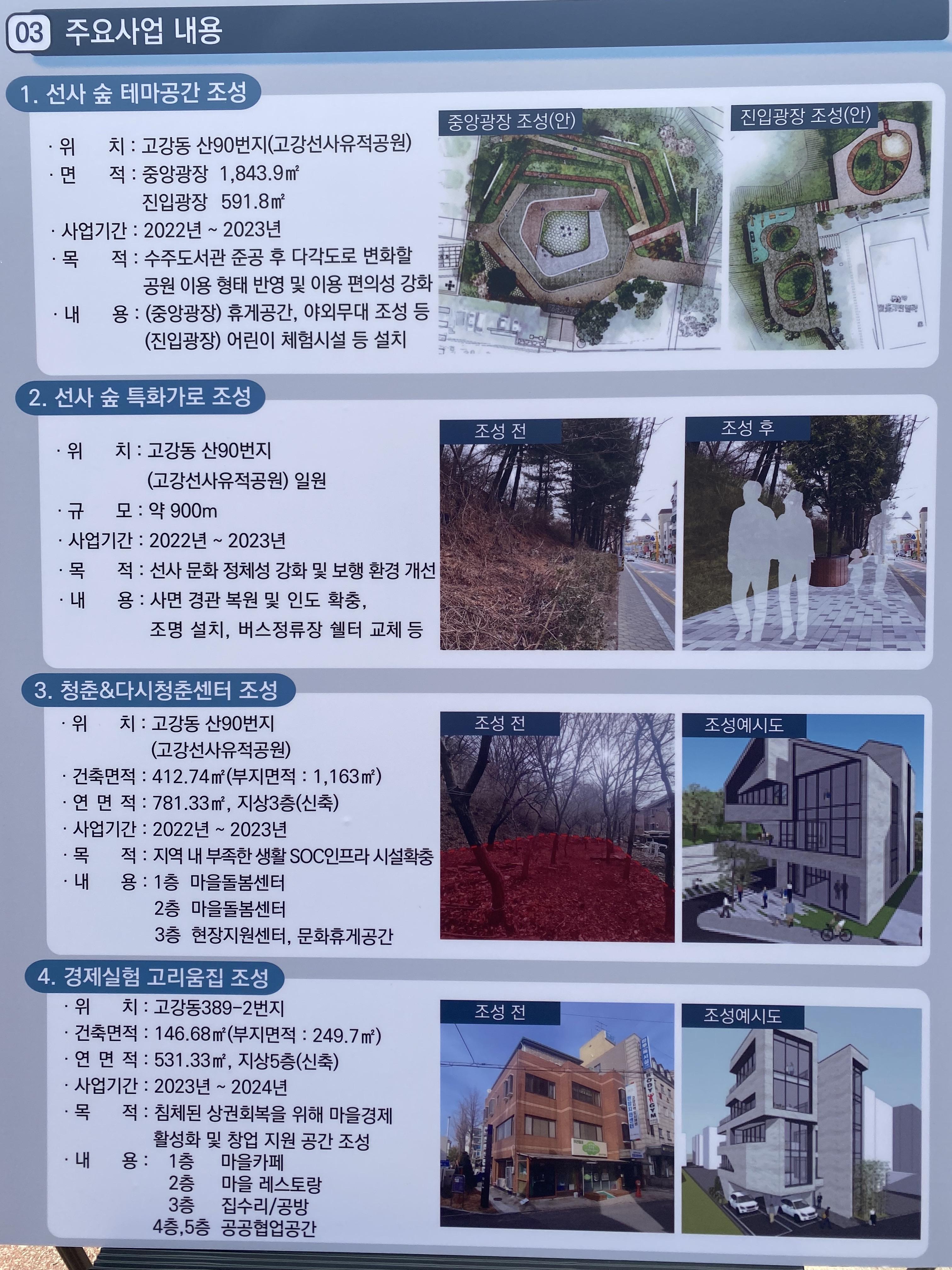 현재 우리동네는 고강지역 도시재생 뉴딜사업 (일반근린형) 선정과 그에 따른 사업 진행, 선사유적공원 도서관 설립, 은행단지 내 장안공원 조성 등 변화와 이슈가 많은데요.