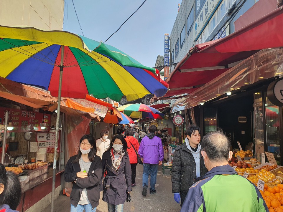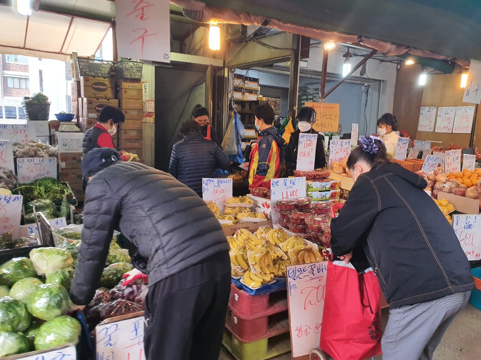코로나 여파로 문을 열지 않은 시장들이 많아서 주민들이 많이 없을 줄 알았지만 생각보다 많은 지역주민들이 제일시장에서 장을 보고 있었습니다. 시장에 들른 주민들은 모두 마스크를 쓰며 안전하게 시장을 다니는 모습을 볼 수 있었습니다.