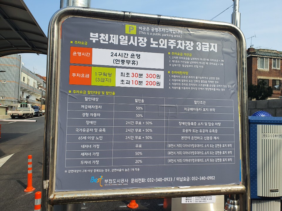 여러 가게들을 지나고 나면 공영 주차장도 있는 것을 확인 하였습니다. 이 공영주차장은 새로 생긴지 얼마 안되었다고 합니다. 시장에서 많은 물건을 살야할 때 주민들이 부담없이 차로 오고 갈수 있게 된거 같아 정말 기분 좋은 소식입니다.