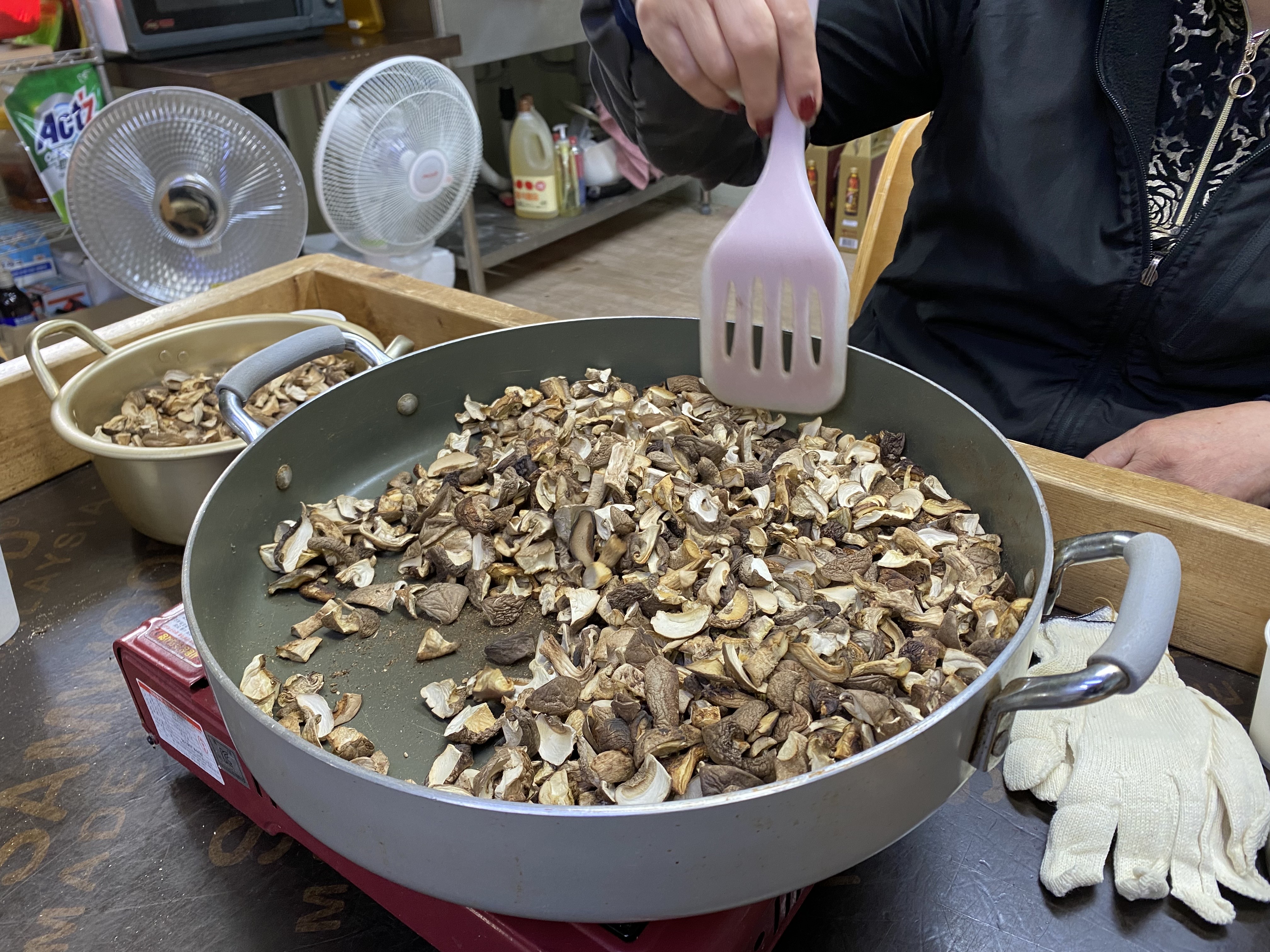농장에서 볶고 있는 버섯이라 그런지 냄새도, 보기에도 더 맛있었습니다.