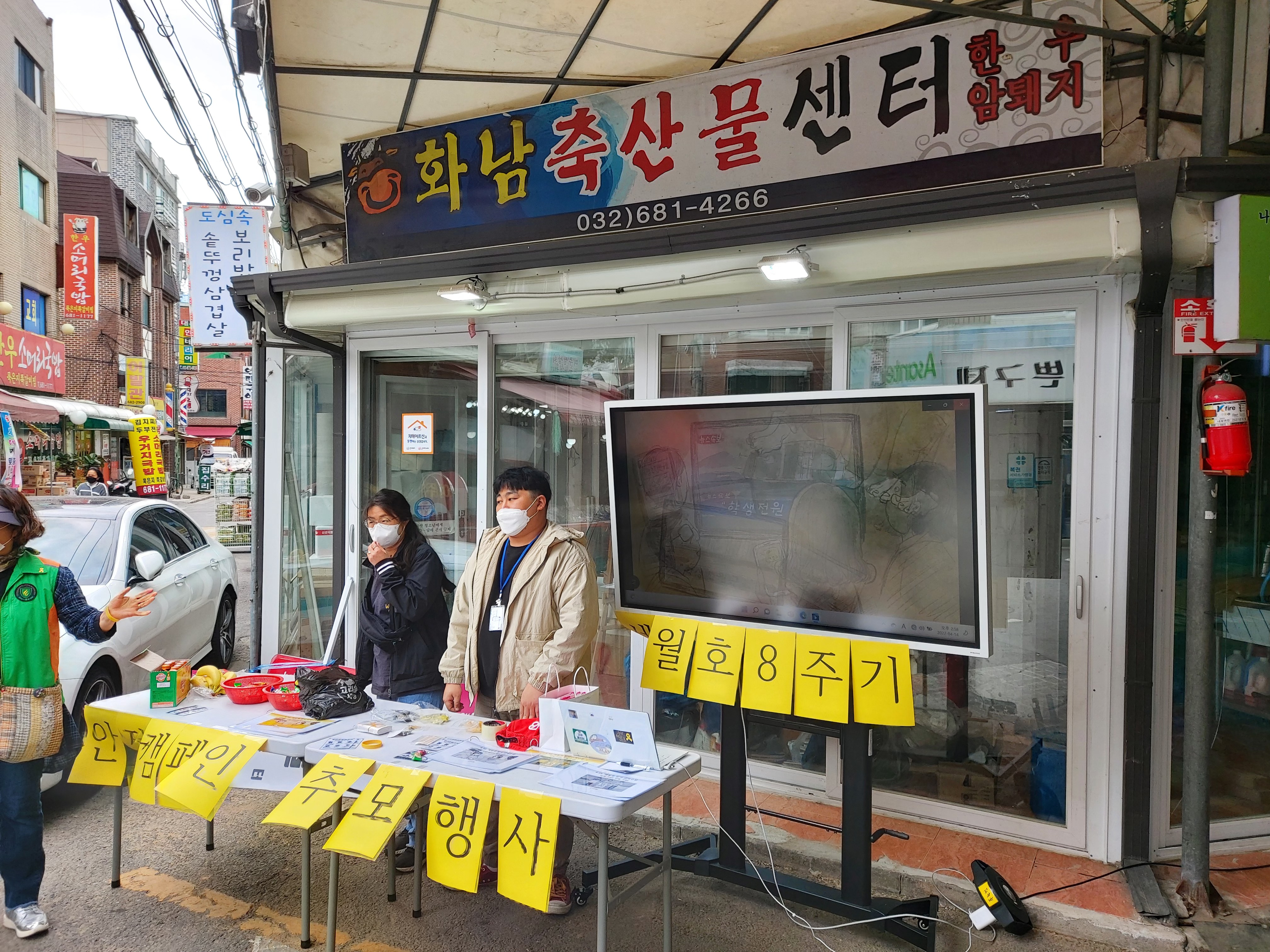 4월 14일(목) 고리울동굴시장에서 추모행사와 안전캠페인을 했습니다.