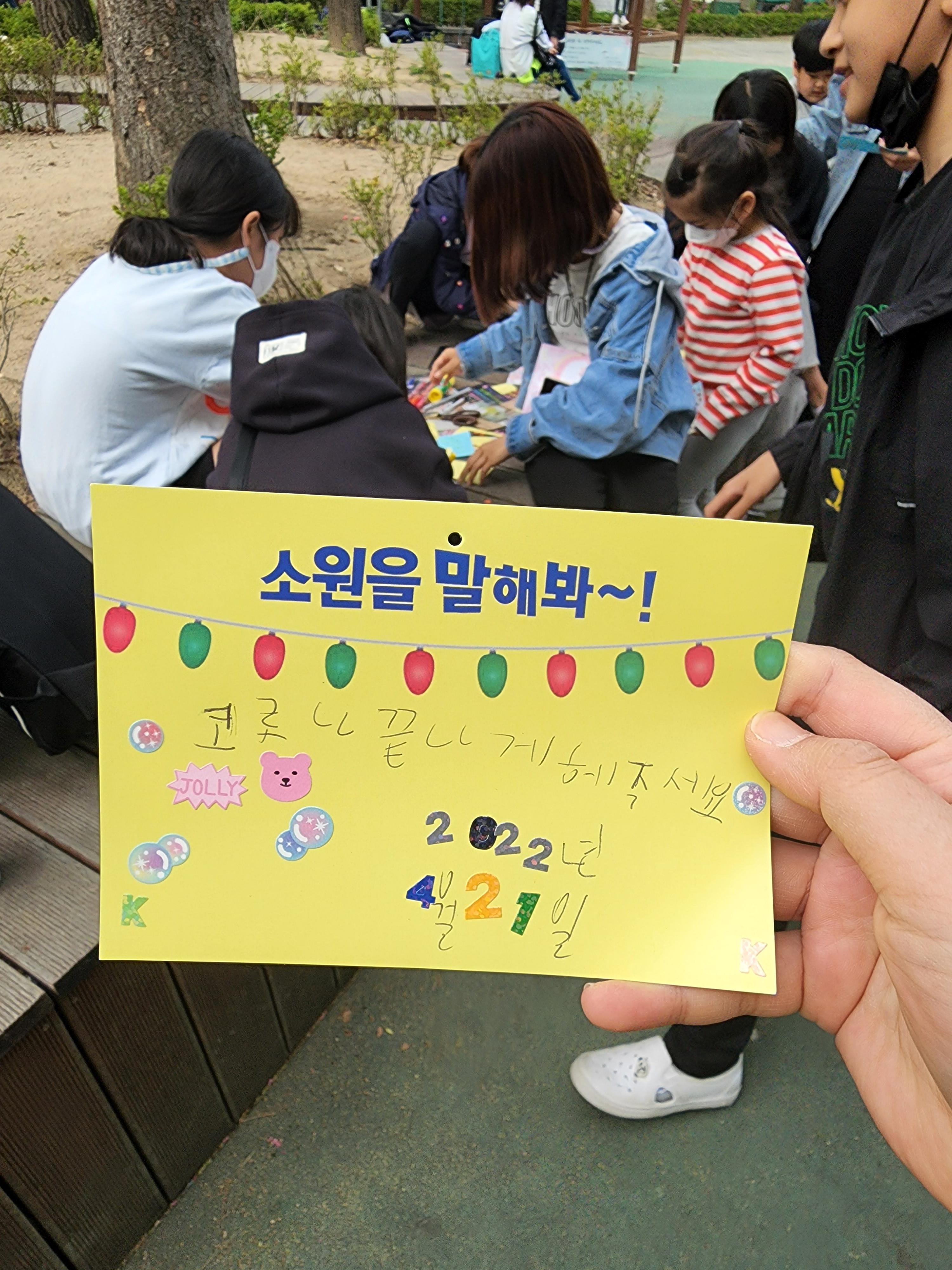 아이들은 소원으로 '코로나 끝나게 해주세요', '남자친구(여자친구) 생기게 해주세요' 같은 것들을 씁니다.