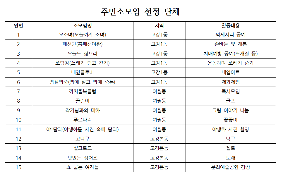 [주민모임] 3인 이상의 소모임 지원해드려요.