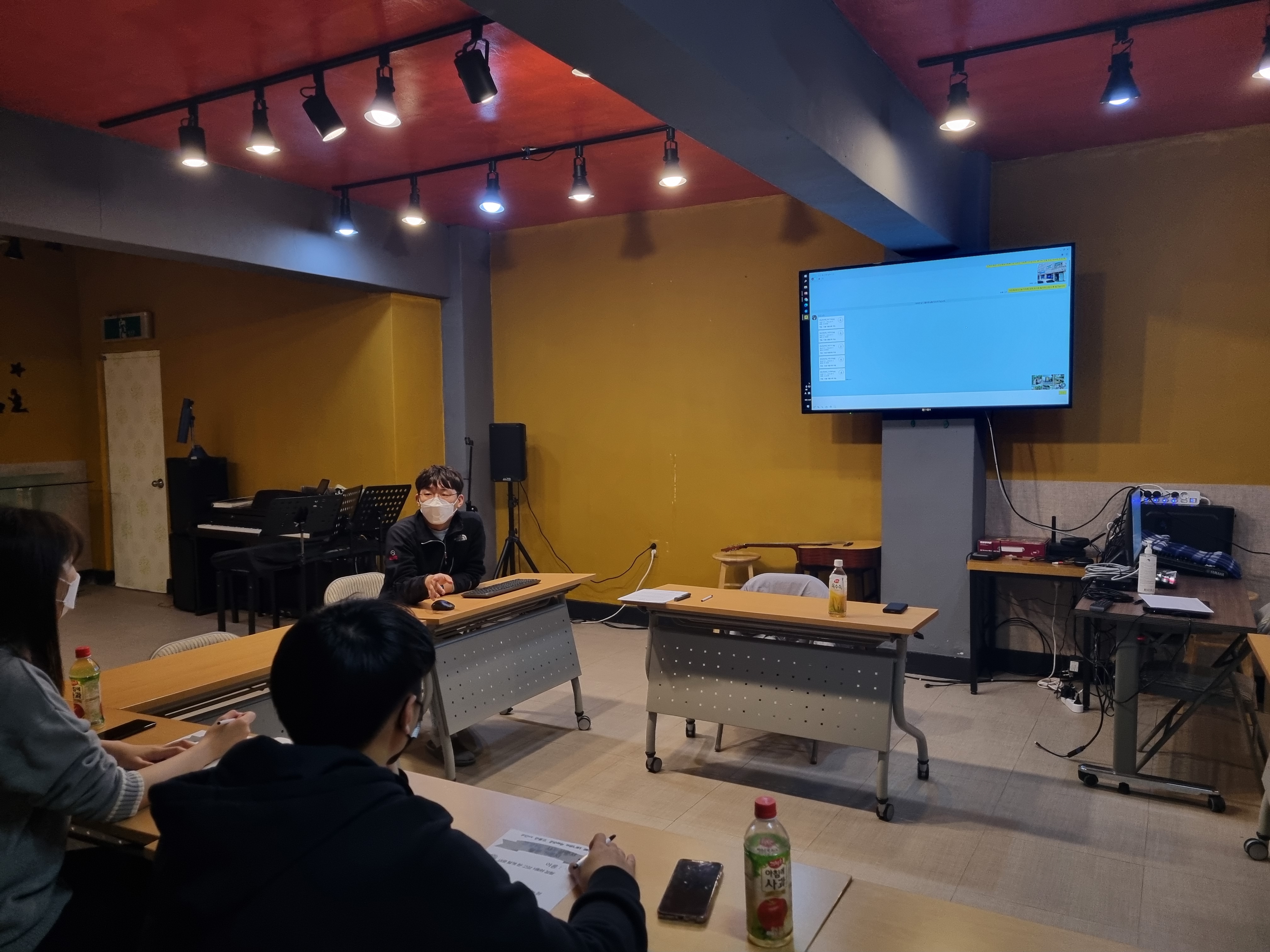교육 마치고, 오늘의 활동 주제를 정하기 위한 회의를 시작합니다. 이해를 돕기 위해 함께 본 영상에 나온 미세먼지, 무장애 여행, 안전한 통학길, 재난 상황에 필요한 주유소 등의 주제가 다소 거창하게 느껴진 탓인지 참가자들이 쉽게 의견을 내지 못하고 있는 것처럼 느껴졌습니다.