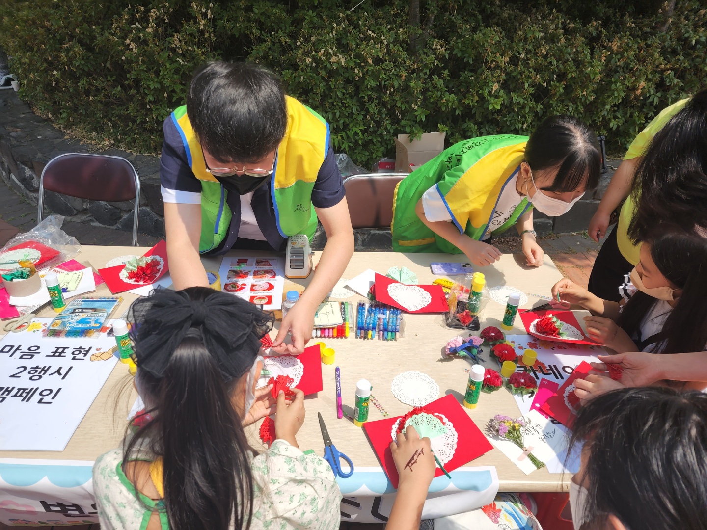 카네이션 만들기와 나눠드리기, 별자리 보기, 타투 체험, 미니게임 등 운영해주셨습니다.