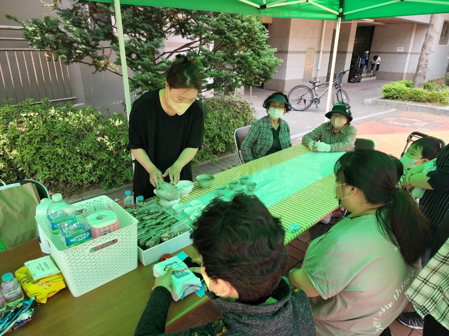 커뮤니티 봉사단 선생님들은 연로하심에도 마을을 위해 꾸준히 활동해주고 계십니다. 오늘은 주민분들께 나누어드릴 물티슈와 떡을 준비해주셨습니다.